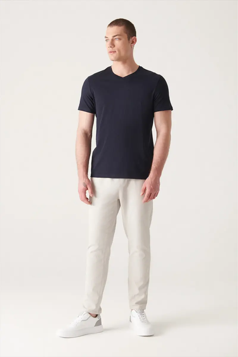erkaklar uchun futbolka, ko'k rangli futbolka, paxta futbolka, V shaklidagi yoqa futbolka, oddiy kesimli futbolka, erkaklar kiyimlari, futbolka modellari, E001001