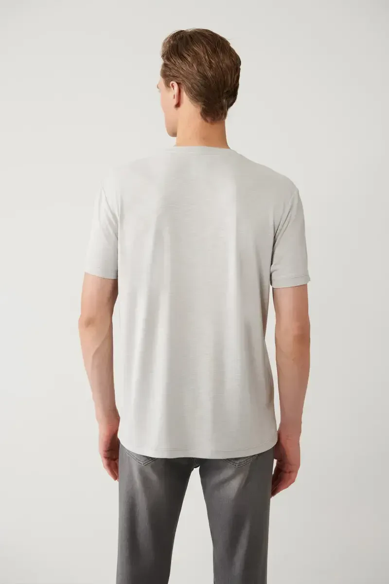 Erkaklar uchun kulrang krujka bo'yinli bosib chiqarilgan Soft Touch Regular Fit futbolkasi A41y1136 | Qulay va zamonaviy tanlov
