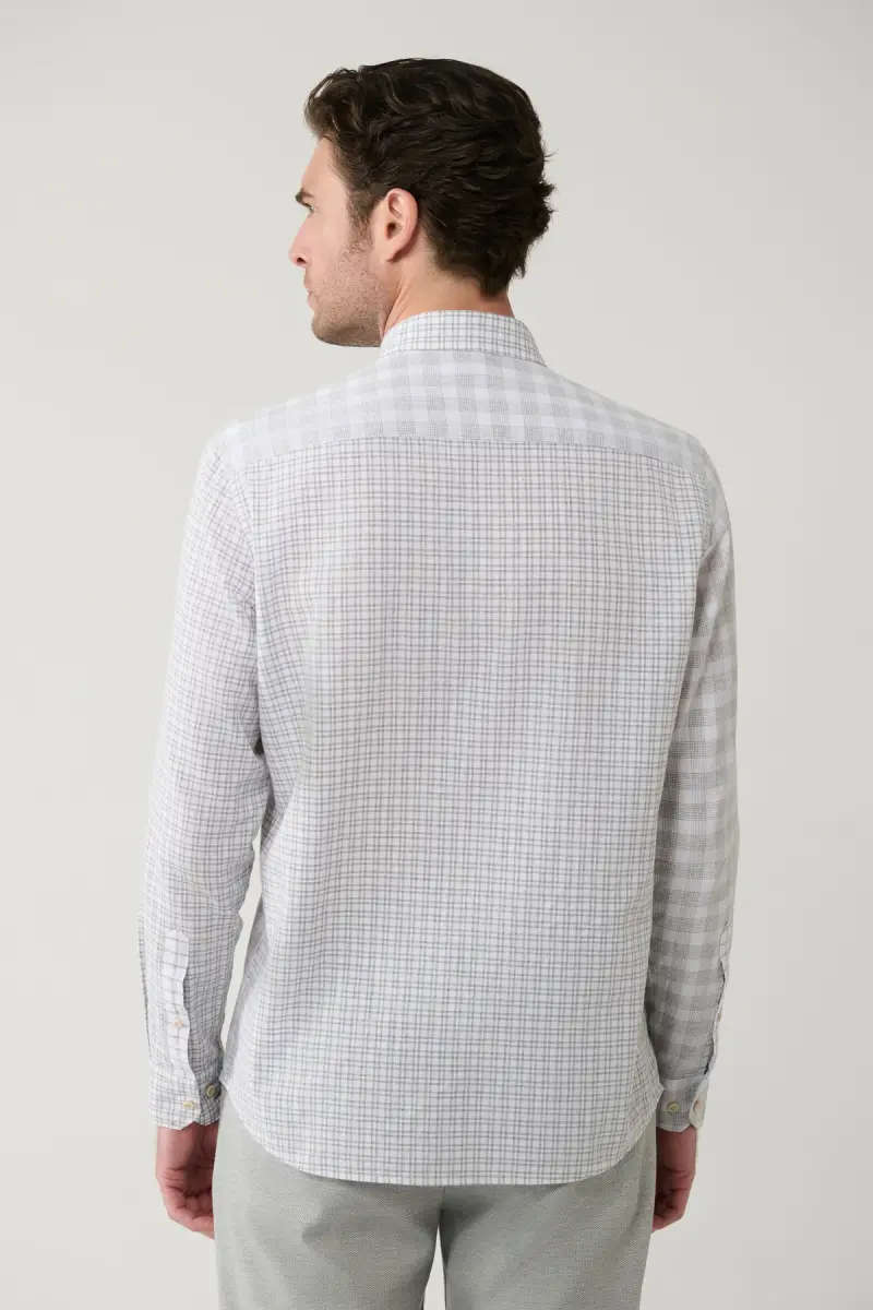 erkaklar ko'ylagi, kulrang ko'ylak, tugmali yoqa, ekose ko'ylak, zig'ir ko'ylak, regular fit ko'ylak, a41y2052