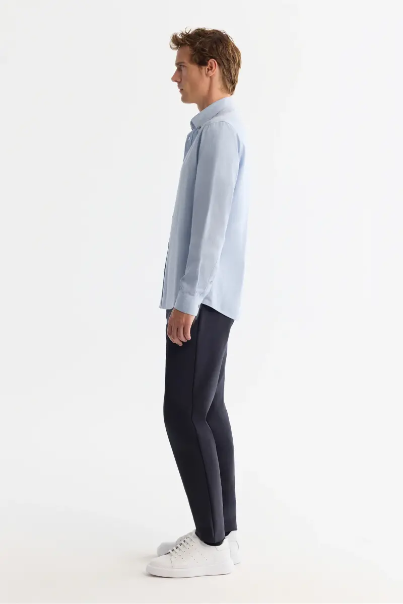 Uslub va qulaylikni birlashtirib, Erkaklar uchun och ko'k rangli ko'ylak har qanday uslubga mos keladigan vaqtsiz qismdir. 100% paxta baliq suyagi flanel matodan tayyorlangan ko'ylak, yumshoq to'qimasi va nafas oladigan xususiyati bilan kun bo'yi qulaylik yaratadi. Tugmali yoqasi va klassik kesimi zamonaviy va zamonaviy ko'rinish beradi.