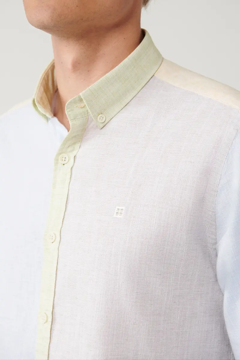 Erkaklar uchun och moviy ko'ylak har bir erkakning shkafida bo'lishi kerak bo'lgan asosiy kiyim. Kundalik kiyim uchun ideal bo'lgan bu ko'ylak zig'ir aralashmasi matosidan tayyorlangan bo'lib, nafas olish va qulaylikni ta'minlaydi. Tugmali yoqasi va oddiy kesimi bilan zamonaviy va zamonaviy ko'rinish hosil qiladi.