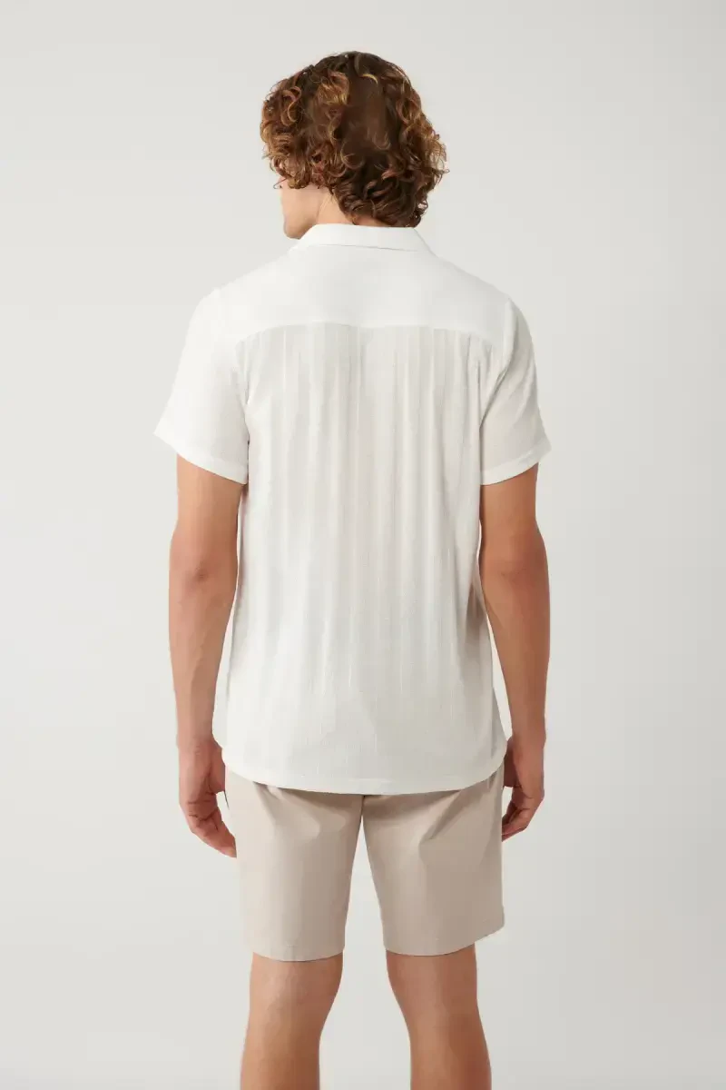 Erkaklar uchun oq ko'ylak Apaj yoqasi to'qilgan jakkardli oddiy o'rindiq A41y2027, ish uchrashuvlardan tortib kundalik faoliyatingizgacha har qanday muhitda zamonaviy va qulay ko'rinishga erishishingizga imkon beradi.