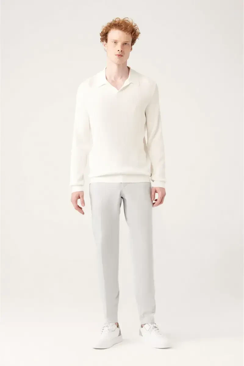 Erkaklar uchun oq tugmasiz Polo yoqa to'qimalı rayon Regular Fit triko A31y5014