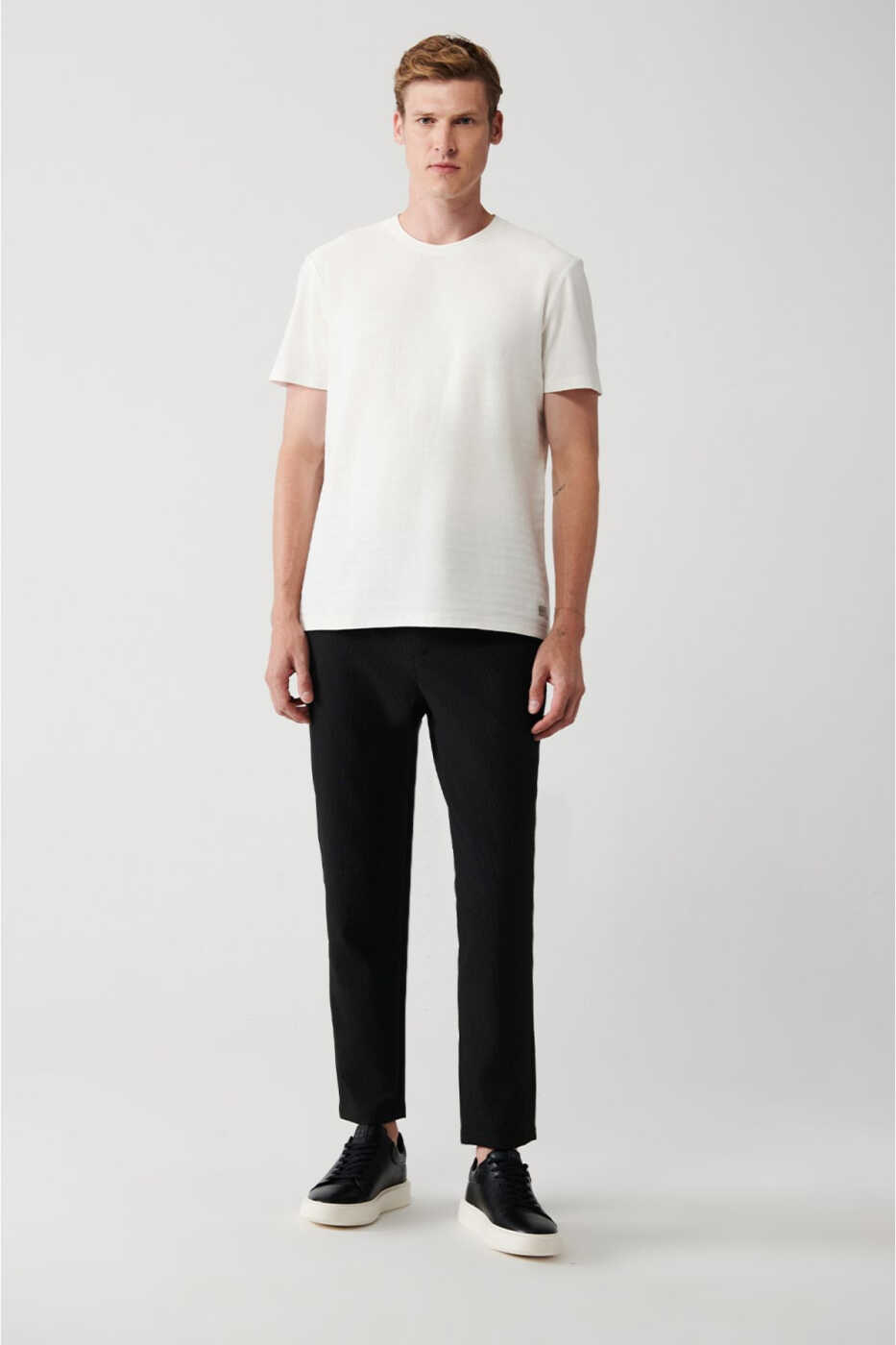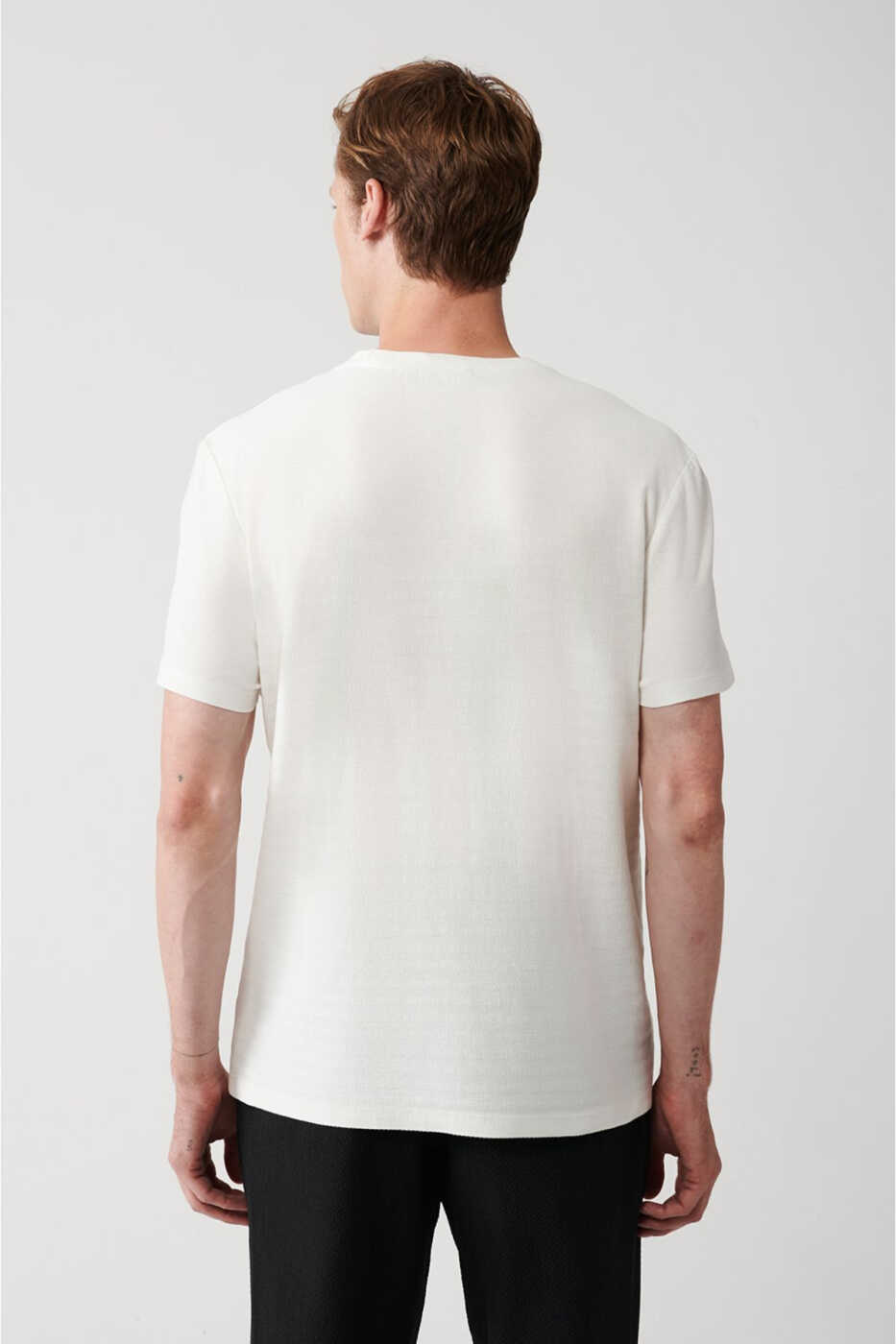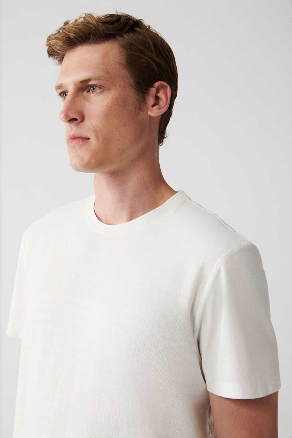 erkaklar uchun t-shirt, oq t-shirt, bisiklet yoqali t-shirt, jakkard t-shirt, paxta t-shirt, regular fit t-shirt, A31y1057, erkaklar kiyimlari, t-shirt modellari