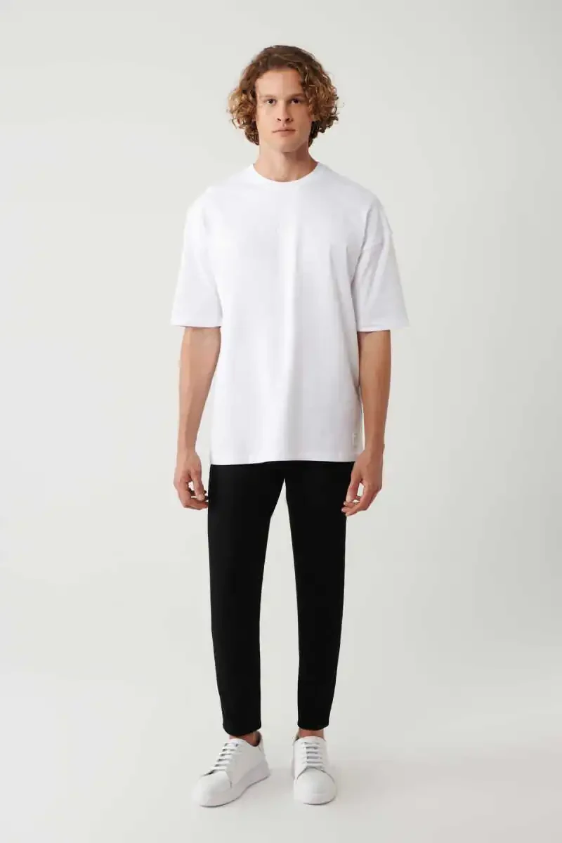 Erkaklar uchun oq rangli futbolka, aylana bo'yinli, keng kesimli A41y1325 ning afzalliklari: