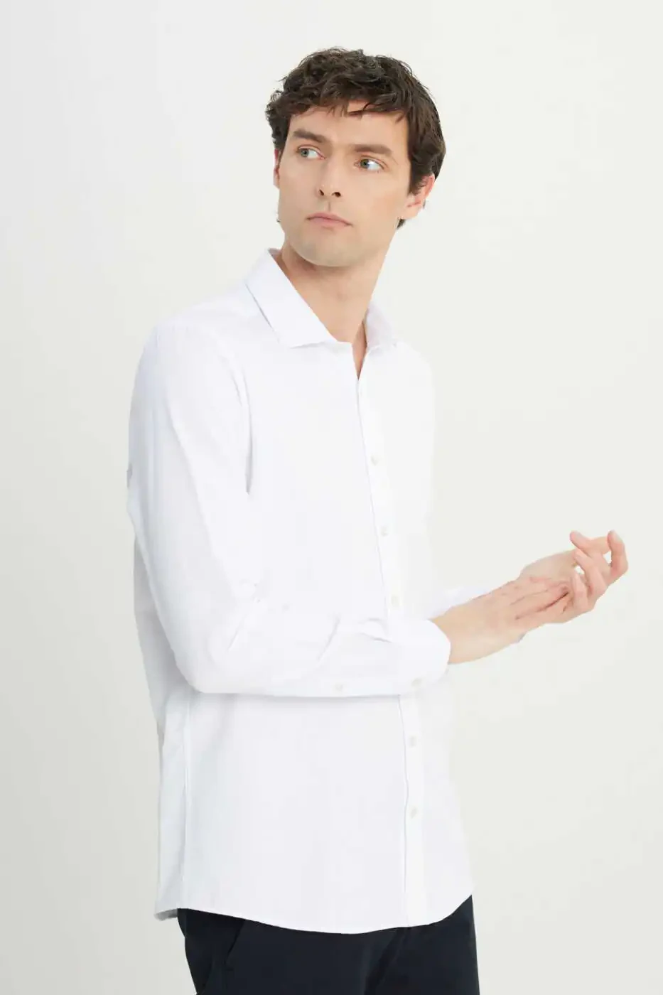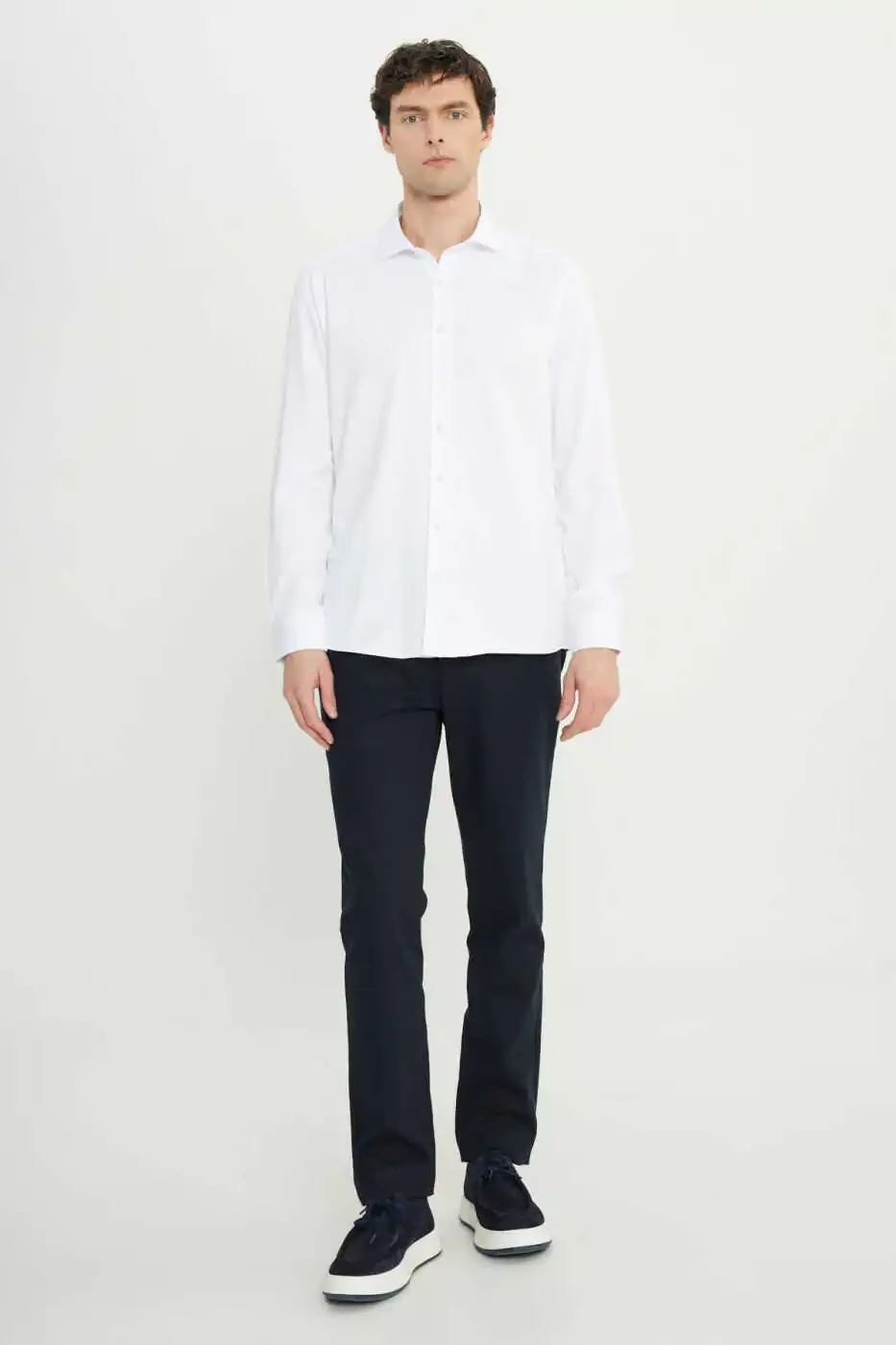 Uslub va qulaylikni birlashtirgan ushbu oq rangli slim fit ko'ylagi sizning garderobingizning ajralmas qismi bo'ladi. Italyan yoqasi ko'ylakka zamonaviy ko'rinish bag'ishlaydi, slim fit esa tanangizga mukammal darajada mos keladi, qovurg'alar esa benuqson ko'rinish beradi. Kundalik hayotdan tortib to'y va boshqa tadbirlarga qadar har qanday muhitda qulaylik bilan kiyishingiz mumkin bo'lgan ushbu zamonaviy ko'ylak turli rang va naqshli shim bilan mukammal uyg'unlashib, sizning uslubingizni yanada yorqinroq qiladi.