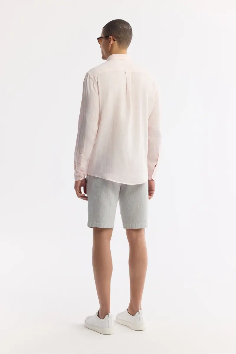 Erkaklar uchun pushti zig'ir ko'ylak yozgi issiqda salqin va zamonaviy bo'lib qolish uchun mukammal tanlovdir. 100% zig'ir matodan tayyorlangan, uning tabiiy tuzilishi nafas olishni va qulay kiyishni ta'minlaydi. Tugmali yoqasi va Comfort Fit kesimi zamonaviy va zamonaviy ko'rinish beradi.