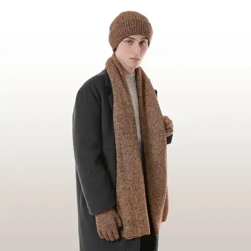 【3-in-1 Qishki Shlyapa Sharf va Qo'lqoplar To'plami】Siz qishki shlyapa, sharf va bir juft qo'lqopga ega bo'lasiz, kundalik kiyish va ochiq havoda mashg'ulotlar uchun juda mos keladi. Bir to'plam barcha ehtiyojlaringizni qondiradi, doimo issiq turing, qish uchun juda yaxshi.【Super Issiq Material】Qishki shlyapa va sharf yuqori sifatli akril matodan qilingan va ichki qismi yumshoq jun bilan qoplangan bo'lib, u juda yumshoq va qulay bo'lib, sizni issiqlik va qulaylik bilan ta'minlaydi.【Yuqori Sezgir Sensorli Ekranli Qo'lqoplar】Bosh barmoq va ko'rsatkich barmoqlarida yuqori sezgir o'tkazuvchan material bilan, sovuq havoda qo'lqoplarni yechmasdan smartfon yoki planshetdan normal foydalanishingiz mumkin.【Hajm Bo'yicha Ma'lumot】Shlyapa Aylanasi: 22-23.6'', Balandligi: 10.2''; Doira Sharf Aylanasi: 19.7'', Kengligi: 8.7''; Qo'lqoplar Uzunligi: 8.7'', Kaft Kengligi: 3.5''. Yaxshi elastiklik bilan, bir o'lcham ko'pchilik erkaklarga to'g'ri keladi.【Keng Qo'llanilishi】Turli holatlar uchun mos, masalan, yurish, yugurish, sayr qilish, konkida uchish, chang'i uchish va boshqa ochiq havoda mashg'ulotlar, yoki shunchaki kundalik kiyish. Eri, otasi, yigitingiz, do'stlaringiz va o'zingiz uchun ajoyib sovg'a.