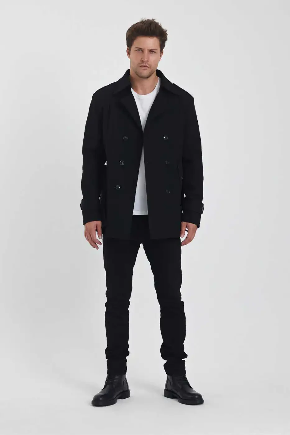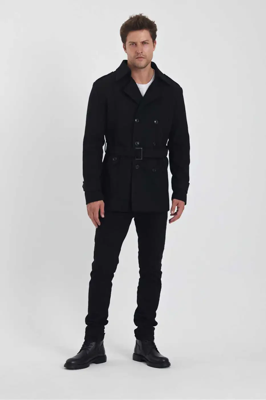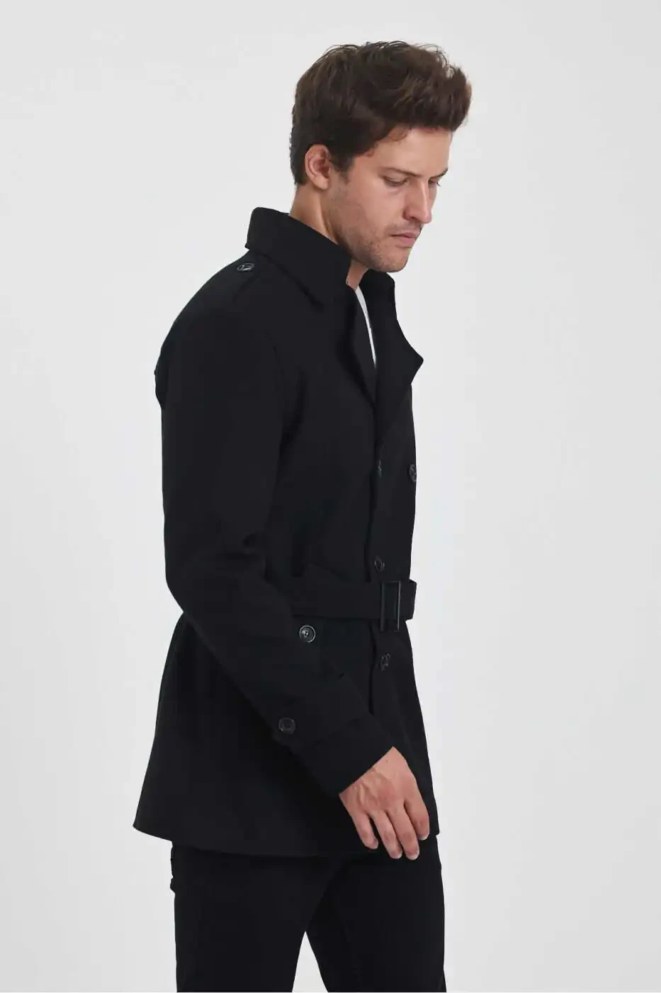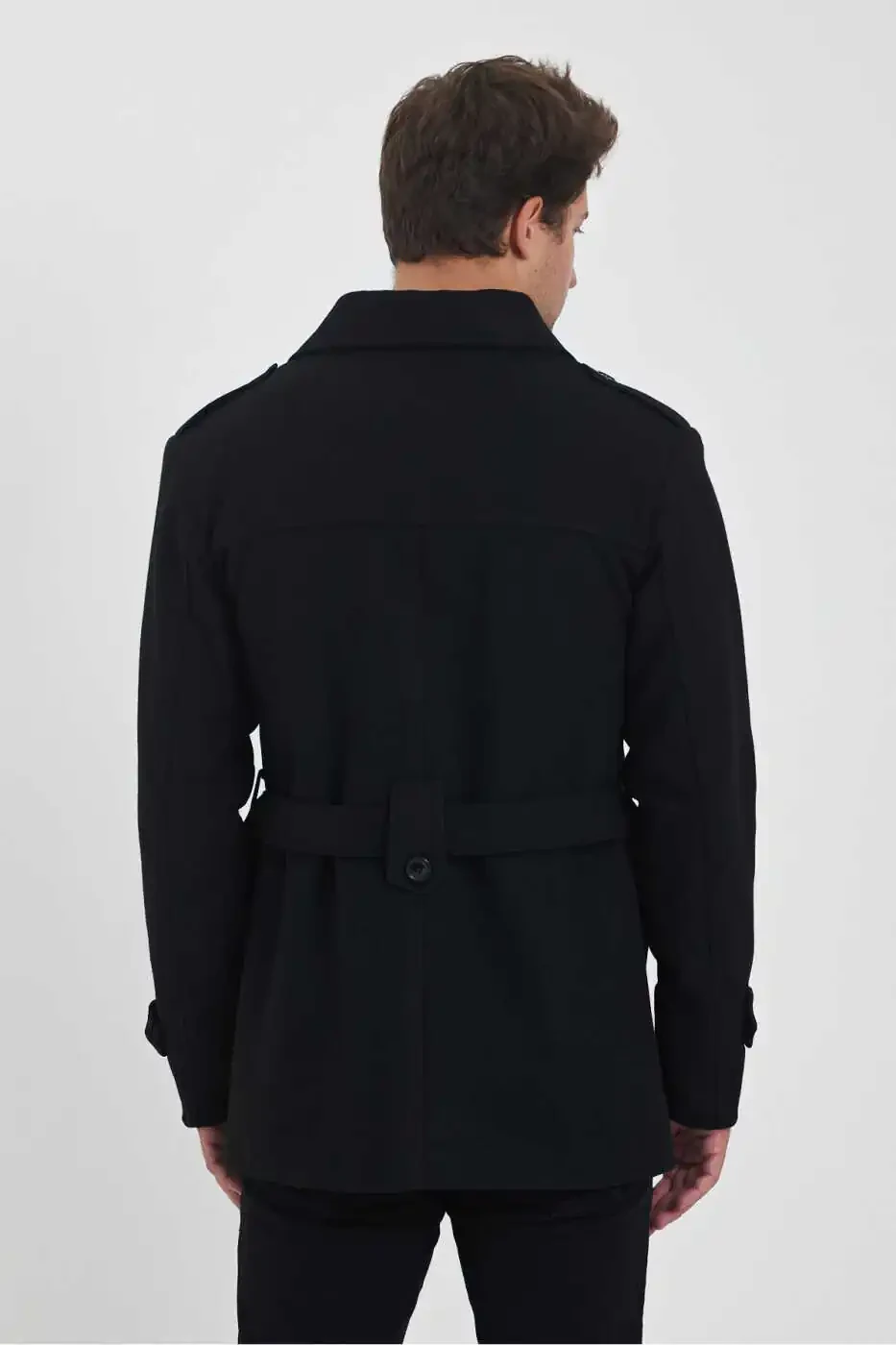 Erkaklar uchun Qora Ikki Qatorli Tor Kesilgan Kashmir Palto Xususiyatlari: