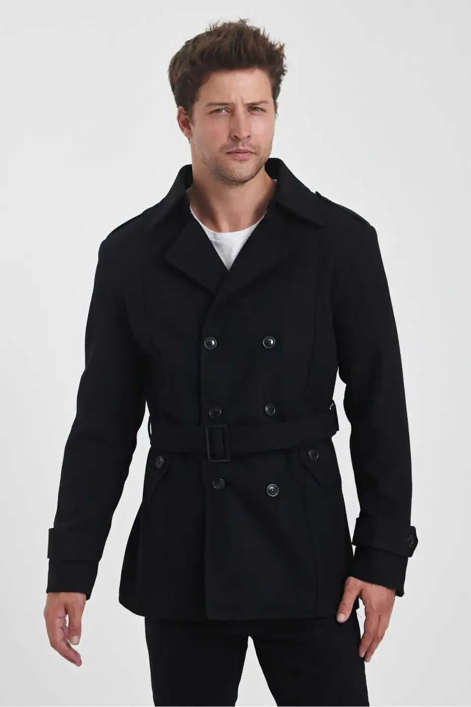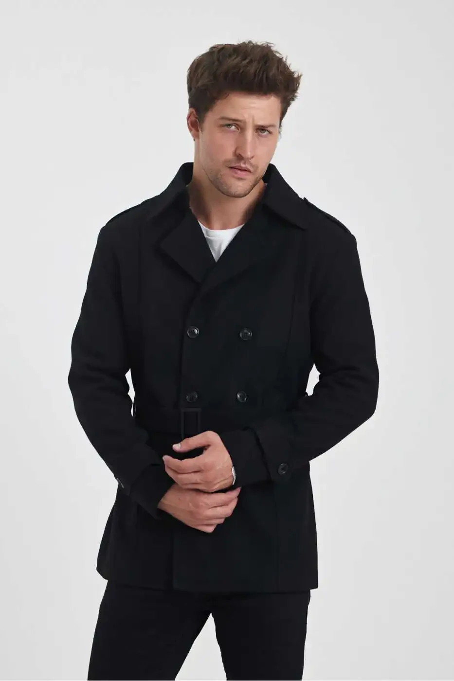Erkaklar uchun Qora Ikki Qatorli Tor Kesilgan Kashmir Palto bilan sovuq qish kunlarida ham uslubdan voz kechmang!