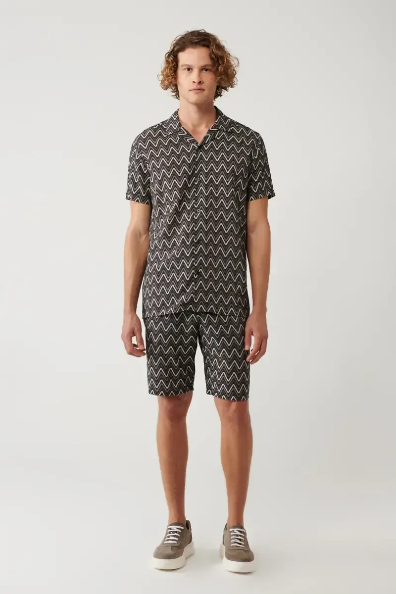 erkaklar ko'ylagi, qora ko'ylak, tarqalgan yoqa ko'ylak, viskoz ko'ylak, naqshli ko'ylak, muntazam o'tirish ko'ylagi, A41y2213