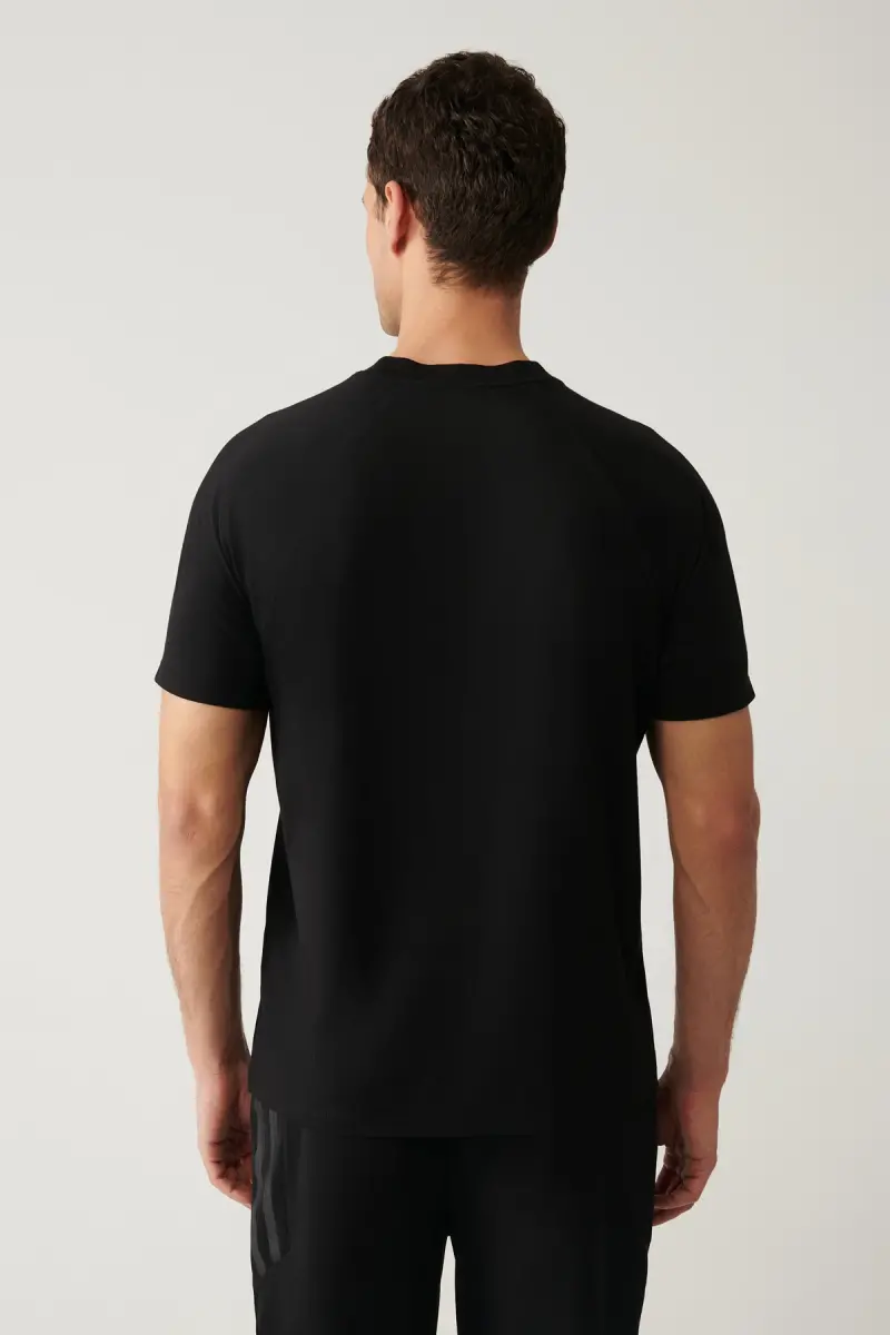 erkaklar futbolkasi, qora futbolka, yumaloq yoqa futbolka, bosilgan futbolka, Regular Fit futbolka, yumshoq futbolka, A41y1031, futbolka modellari, erkaklar kiyimlari