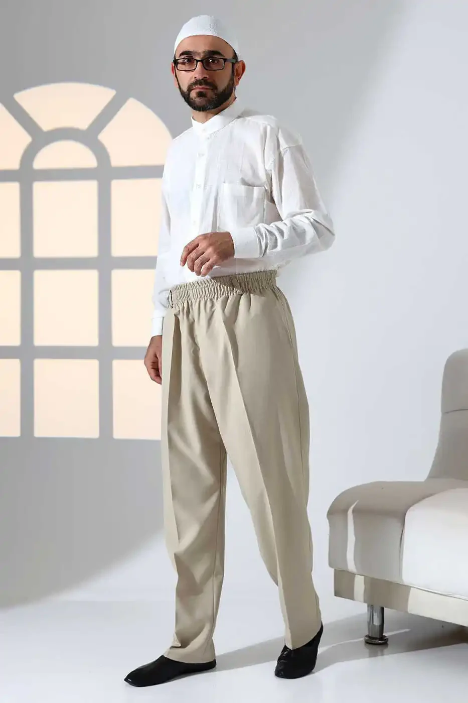 Ihromlik Erkak Shim: Qulay Kesim, Paxtalik, Cho'ntakli, Beli Rezinkali Haj/Umra Shimi
