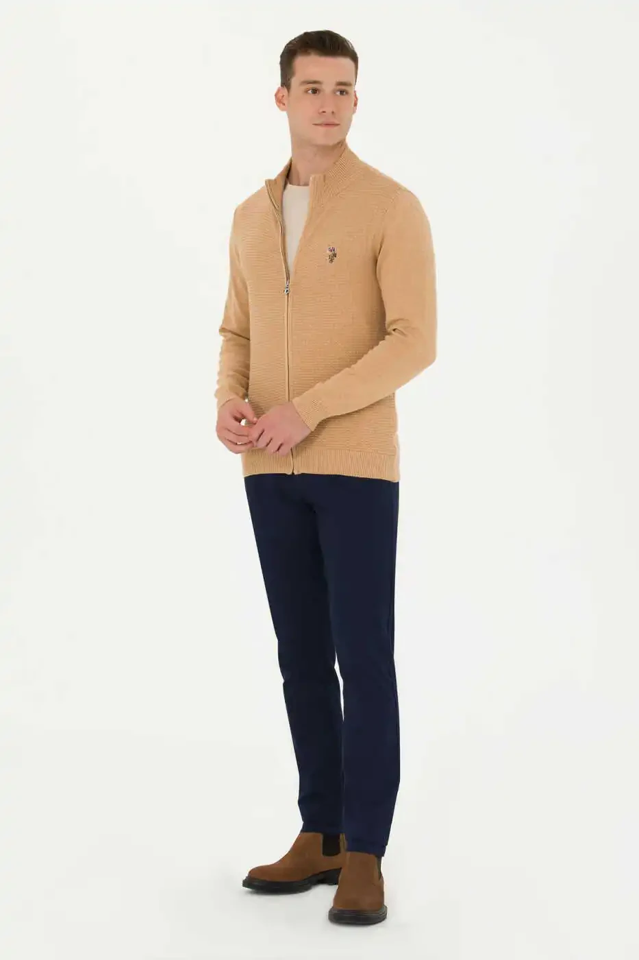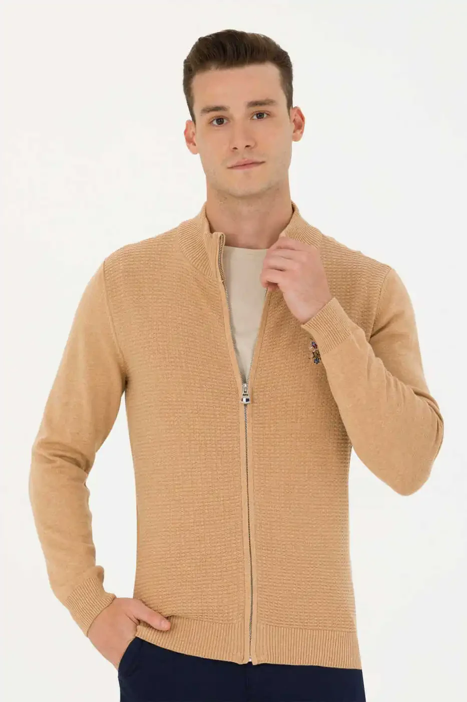 Kundalik hayotda qulaylikni izlovchilar uchun ideal tanlov bo'lgan Erkaklar uchun qum rangli melanj Basic triko kardigan, yumshoq va iliq to'qimasi bilan sovuq havoda sizni isitib turadi. Sport uslubini yaratish uchun jinsi shim va sport poyabzali bilan birlashtira olasiz. Zamonaviy kechki ovqat uchun esa matodan tikilgan shim va charm poyabzal bilan juftlashtirishingiz mumkin.