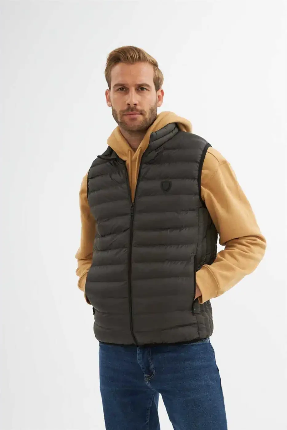 erkaklar puffer jileti, antrasit jilet, qishki jilet, erkaklar kiyimi