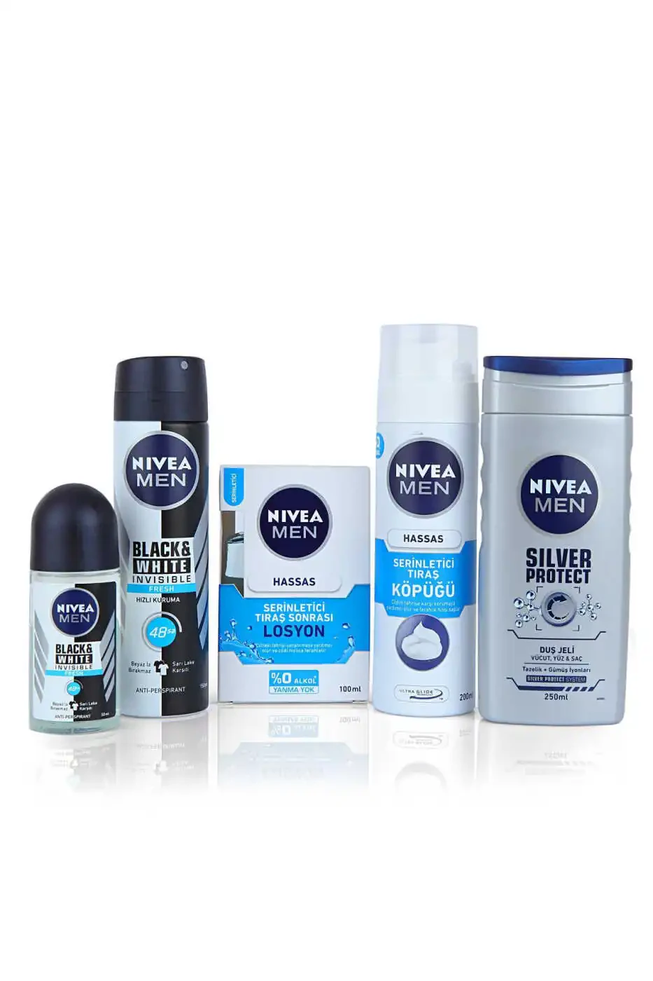 Biz sizga kundalik stress, atrof-muhit omillari va soqol olishning teringizga ta'sirini kamaytirish uchun maxsus ishlab chiqilgan erkaklar uchun maxsus formuladagi teri parvarishi to'plamini taklif etamiz. Bu to'plam teringizning tabiiy muvozanatini saqlashga yordam beradi, unga sog'lom, yosh va jonli ko'rinish bag'ishlaydi.