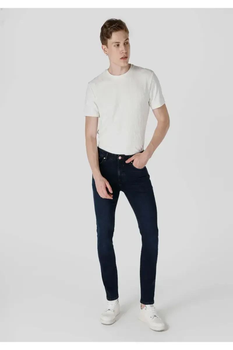 035 Ryan Super Slim Fit Yuqori Bel Tor Tilsiz Qorong'i Ko'k Erkaklar Jinsi Shimlari