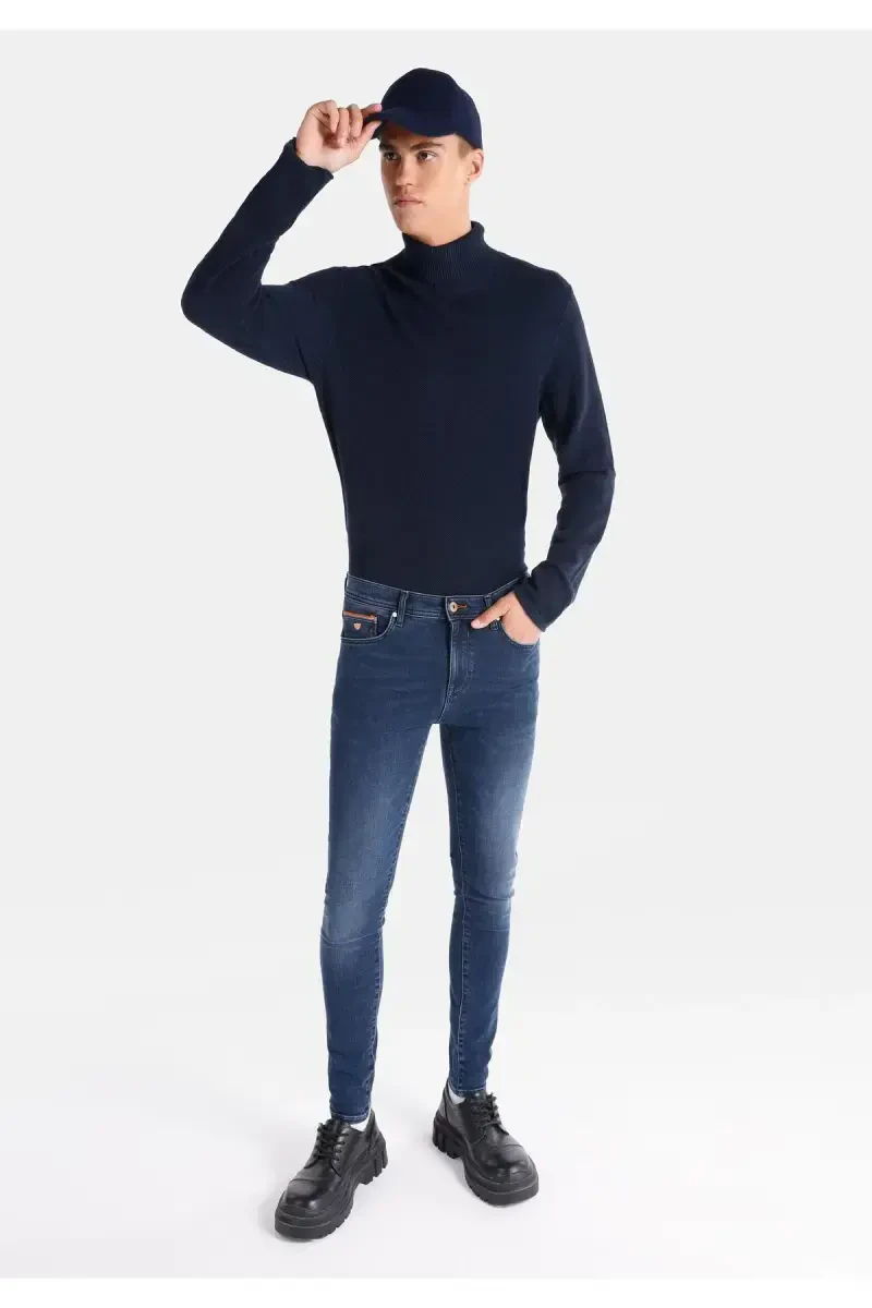 040 Alex Super Slim Fit Pastki Bel Tor Tanga Qorong'i Ko'k Erkaklar Shimini zamonaviy erkakning shkafida bo'lishi shart bo'lgan, o'ziga xos uslub va qulaylikni birlashtirgan kiyimdir. Pastki beli va tor tangasi bilan bu shimin sizning tanangizga mukammal mos keladi va har qanday muhitda o'zingizni ishonchli his qilishingizga yordam beradi.