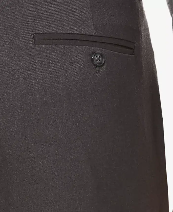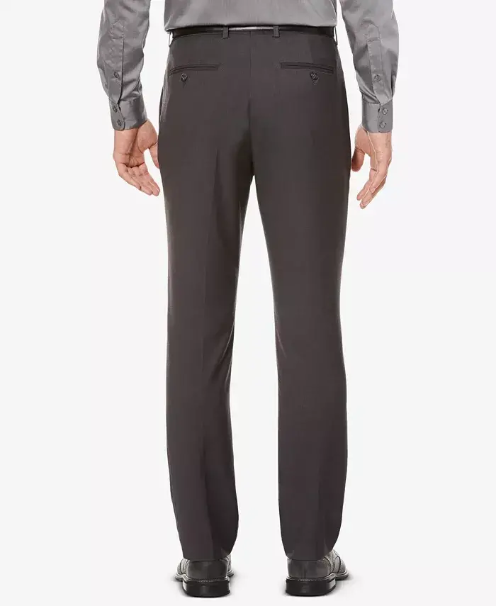 Men's Slim-Fit Dress Pants. Material: 65% Polyester, 35% Rayon. Closure: Zipper and Button. Features: Slim-fit, Flat-front, Lightweight, Wrinkle-resistant. Occasion: Business, Office, Wedding. Care Instructions: Machine Wash.