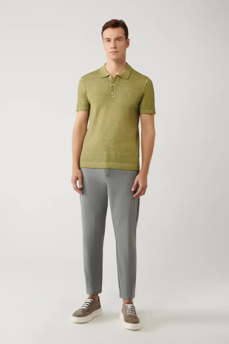 erkaklar uchun polo yoqali futbolka, haki rangli futbolka, garment dyed futbolka, oddiy kesimli futbolka, triko futbolka, erkaklar kiyimi, futbolka modellari, A41y5067