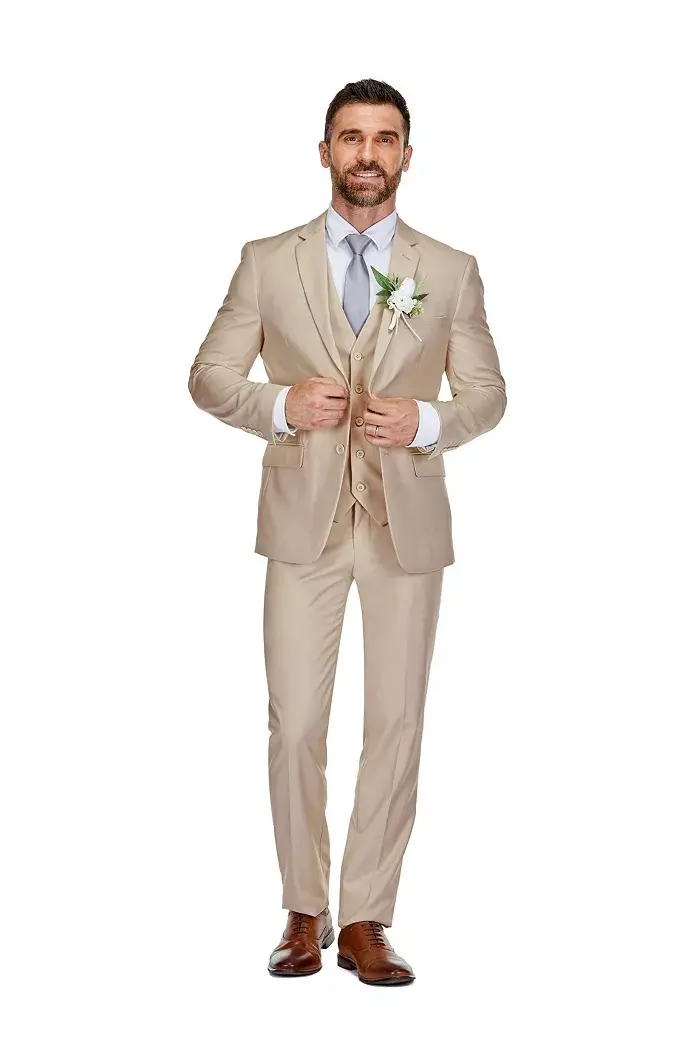 Men's 3-Piece Premium Vested 3-Piece Slim Fit Suit - Tan
