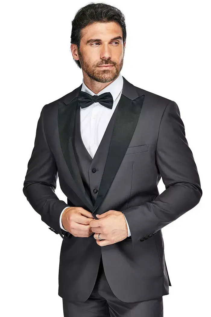 Men's 3-Piece Slim Fit Tuxedo with Peak Lapel - Charcoal