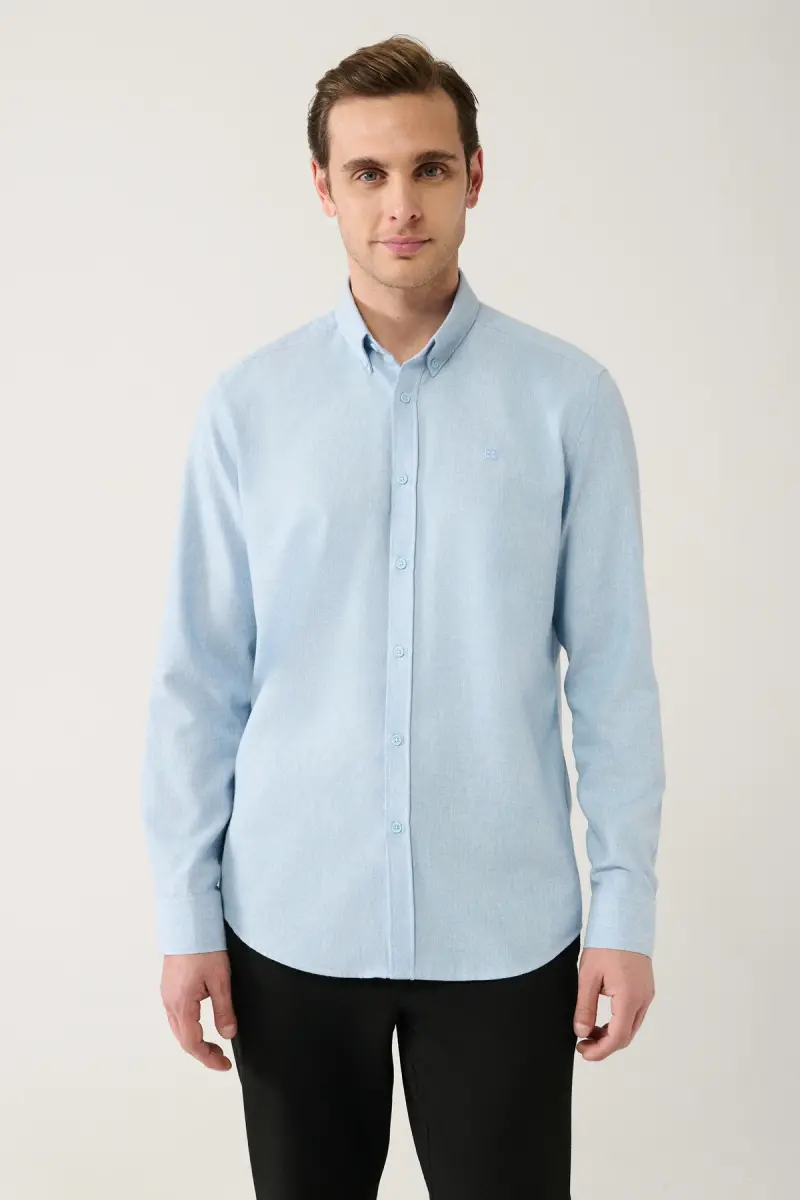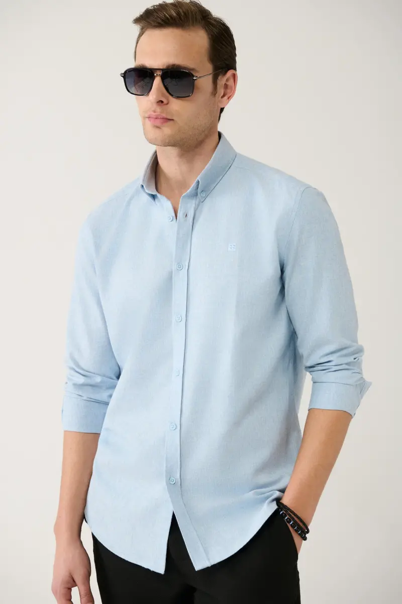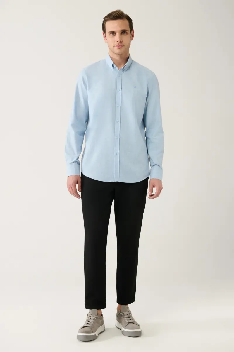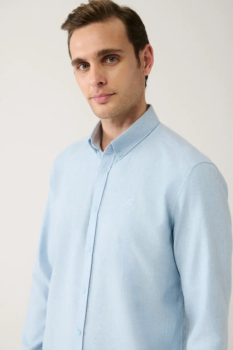 Erkek Açık Mavi Basic Düğmeli Yaka Pamuklu Gömlek E002003-Açık Mavi
