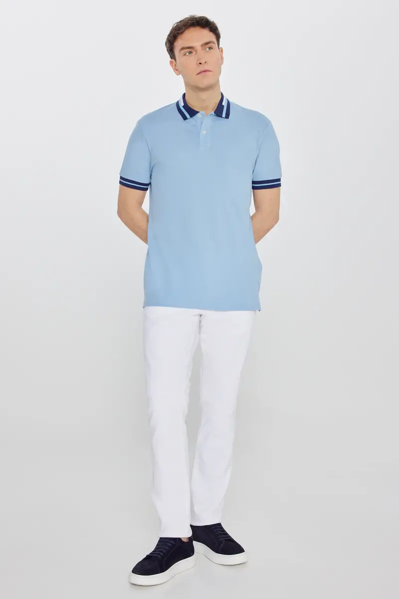 Erkek Açık Mavi Slim Fit Dar Kesim %100 Pamuk Kıvrılmaz Polo Yaka Tişört, günlük kullanım için mükemmel bir seçenektir. Rahatlığı ve şıklığı bir araya getiren bu tişört, gardırobunuzun vazgeçilmez parçalarından biri olacak. %100 pamuk materyali sayesinde gün boyu konforlu bir deneyim sunar. Cildinize nefes aldırır ve terlemeyi en aza indirerek gün boyu ferah kalmanızı sağlar. Slim fit dar kesimi, vücudunuza tam oturarak modern ve fit bir görünüm kazandırır. Bu kesim, hem spor hem de şık kombinleriniz için idealdir. Kıvrılmaz polo yaka özelliği sayesinde her zaman düzgün ve bakımlı görünür. Ütü gerektirmeyen yapısıyla zamandan tasarruf etmenizi sağlar. Açık mavi rengi, yaz aylarının enerjisini yansıtırken, her türlü kıyafetle kolayca kombinlenebilir. İster jeanlerle, ister şortlarla, isterseniz de kanvas pantolonlarla kombinleyerek farklı stiller yaratabilirsiniz. Kısa kollu tasarımı, sıcak havalarda serin ve rahat hissetmenizi sağlar. Basic silueti, her türlü kombinle uyum sağlayarak günlük giyim için mükemmel bir seçimdir. Düz deseni ve sade renk seçeneğiyle zamansız bir görünüm elde edilir. Bu tişört, her zaman moda olan klasik bir parçadır. Cep detayları, pratik kullanım imkanı sunarken, polo yaka tasarımı ile klasik bir hava katar. Dokuma kumaş tipi, dayanıklılığı artırarak uzun süreli kullanım vaat eder. Standart kol ve boy kesimiyle her vücut tipine uygunluk gösterir. Bu tişört, farklı beden seçenekleriyle sunulmaktadır, böylece herkes kendine uygun bedeni kolayca bulabilir. Altınyıldız Classics kalitesiyle üretilen bu tişört, uzun ömürlü ve dayanıklıdır. Yüksek kaliteli malzemelerden üretildiği için uzun süre ilk günkü gibi görünümünü korur. Tüm yaş gruplarına hitap eden geniş kullanıcı yelpazesi ile herkes için uygundur. Bu tişört, hem gençlerin hem de yetişkinlerin tarzına hitap eder. İster günlük hayatta, ister özel etkinliklerde giyebilirsiniz. Şıklığı ve rahatlığı bir arada sunan bu tişört, her ortamda dikkat çekmenizi sağlar. Gardırobunuzda mutlaka bulunması gereken bu tişört, stilinizi tamamlayacak ve size her zaman iyi hissettirecek.