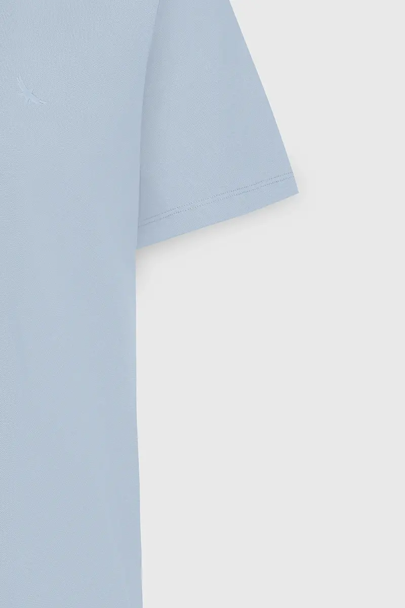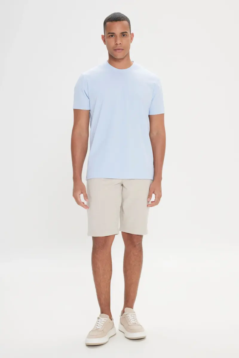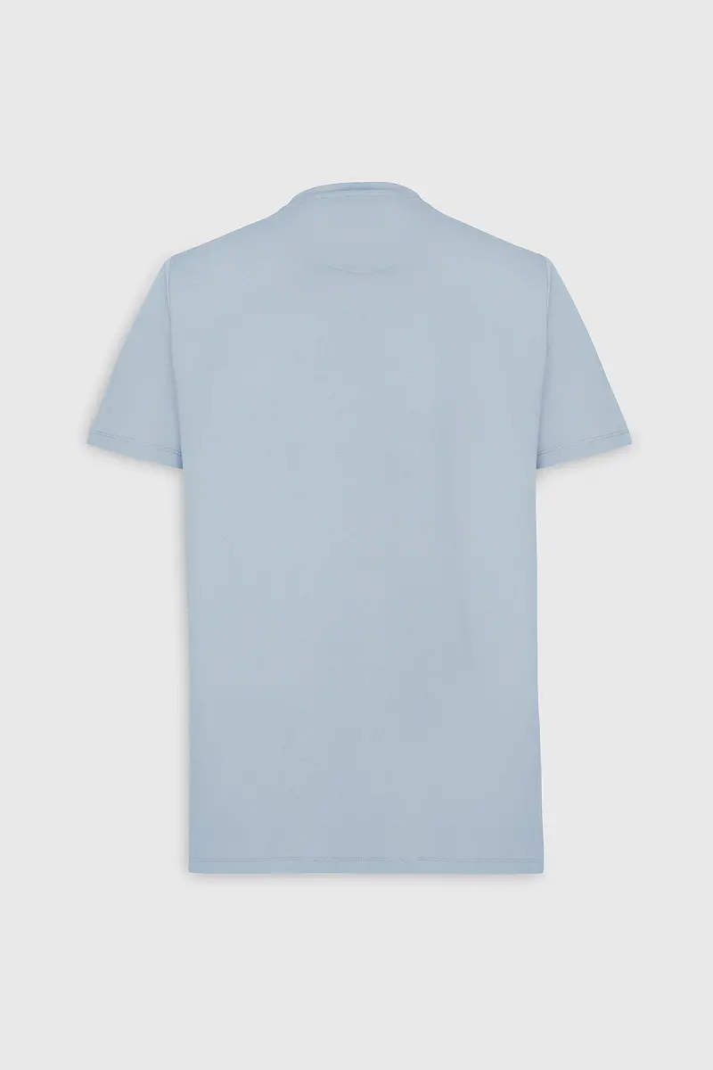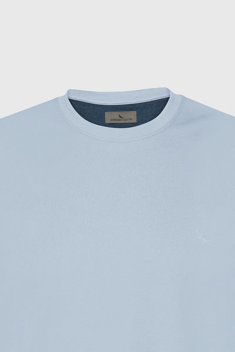 Erkek Açık Mavi Slim Fit Dar Kesim Bisiklet Yaka Pamuklu Tişört-Açık Mavi