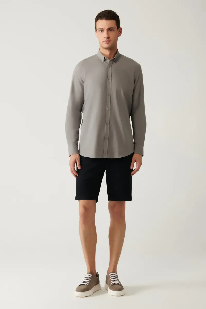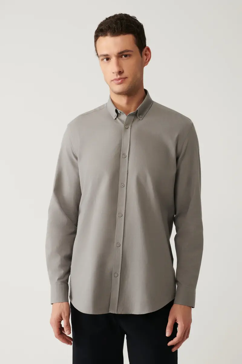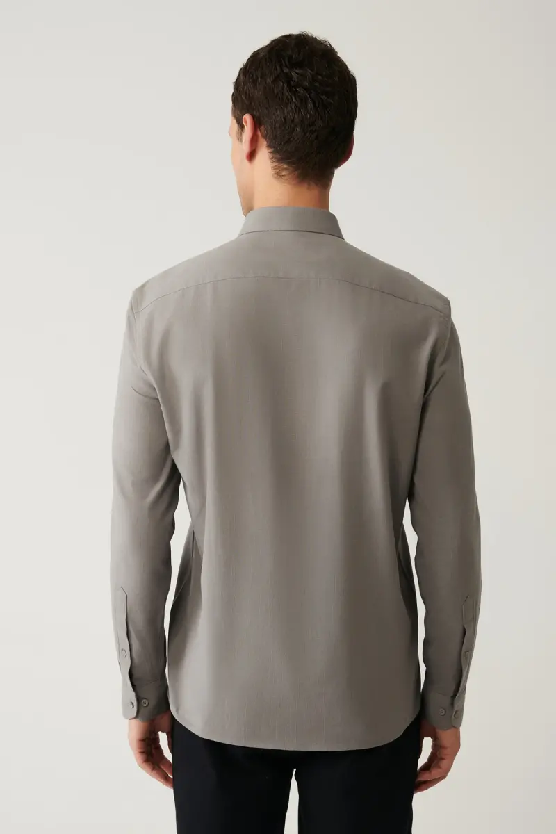 Erkek Antrasit Keten Dokulu Gömlek E002141-Antrasit