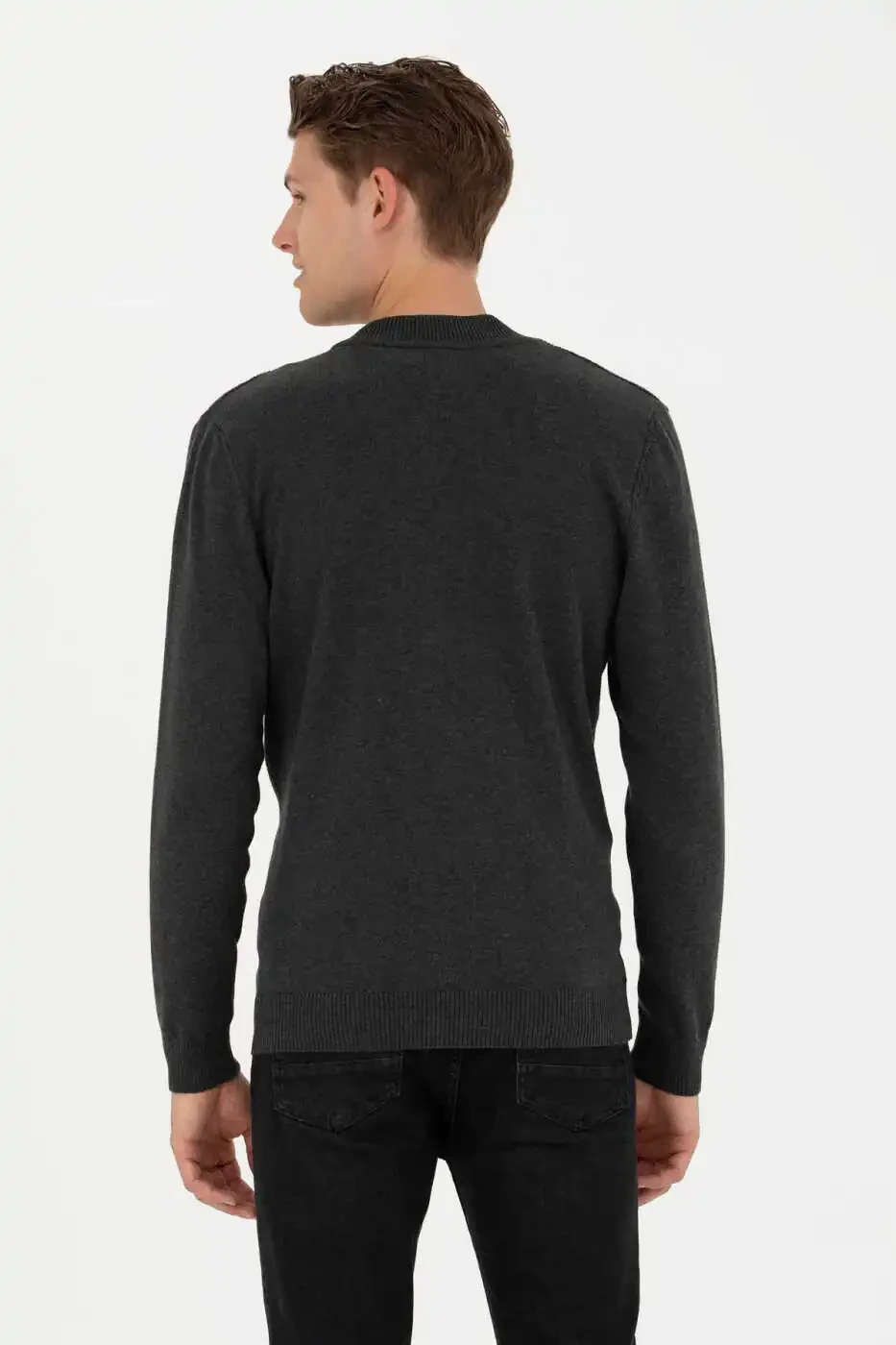 Erkek Triko Hırka: Antrasit Melanj Basic ve Konforlu