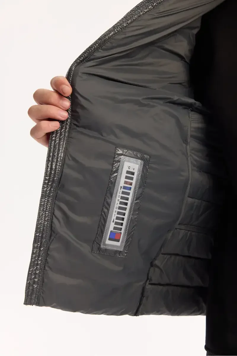 Designed to keep you warm and stylish in cold weather, this unisex puffer jacket in anthracite color will complement any outfit. Featuring a duck down filling for maximum thermal insulation, the jacket's water-repellent and windproof fabric construction protects you from the elements.
