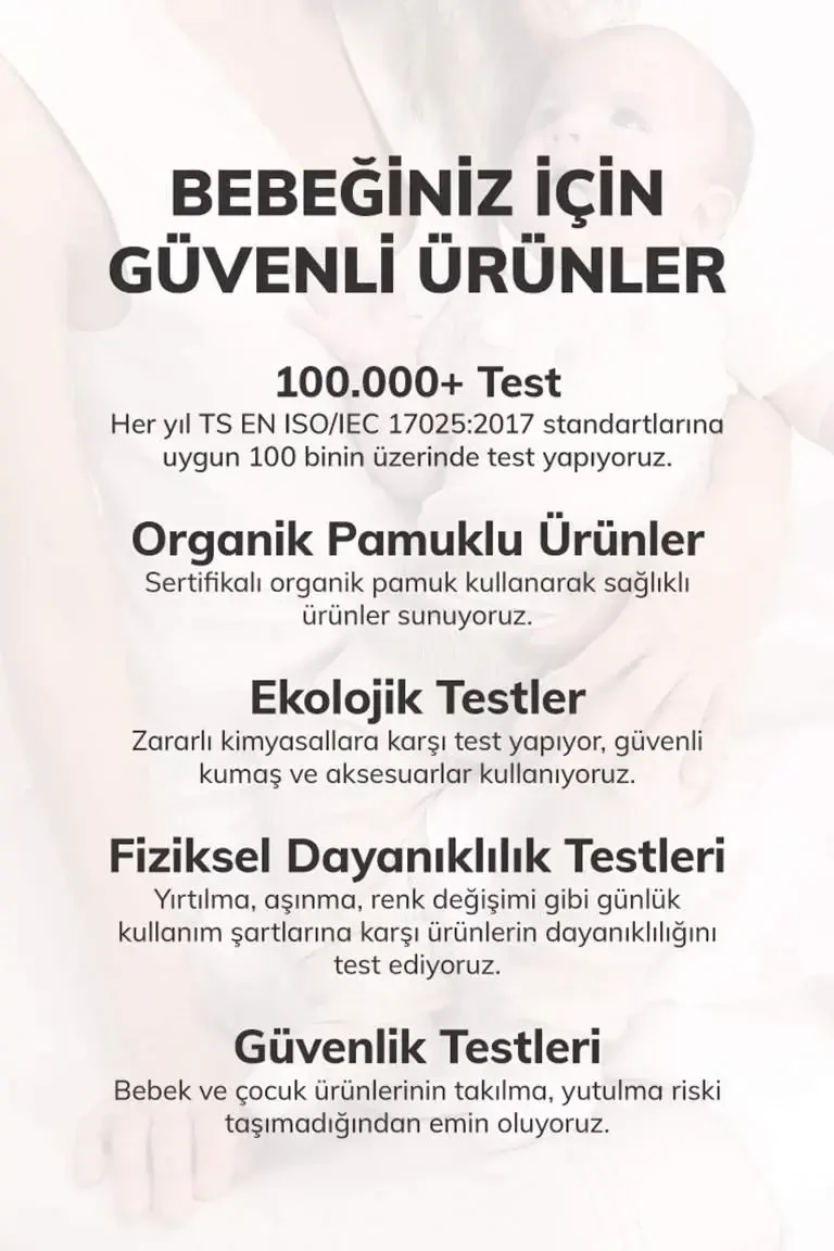 %100 Cotton Gabardine Fabric, Elastic Waistband, Straight LegProduct DescriptionBaby Boy Elastic Waist Straight Leg Gabardine Pants - Khaki is an excellent option that will add both elegance and comfort to your little gentlemen's wardrobe. It is made of 100% cotton gabardine fabric carefully selected for your baby's delicate skin. This allows him to move comfortably and freely throughout the day. The durability of the gabardine fabric ensures that the trousers are long-lasting and resistant to frequent washing. The khaki color can be easily combined with all kinds of tops, which is a great convenience for parents. It is ideal for everyday use or to achieve a stylish look on special occasions. The elasticated waistband of the trousers fits your baby's body perfectly and can be easily put on and taken off. This feature also makes nappy changing processes very practical. The straight leg cut offers a classic and timeless style. This cut does not restrict your baby's freedom of movement and provides him with a comfortable wearing experience. Baby Boy Elastic Waist Straight Leg Gabardine Pants are designed with your baby's comfort and style in mind. It has a stylish look that will appeal to both parents and is an ideal choice for your baby's comfort. This khaki-colored trousers, which will suit any environment, will be an indispensable part of your baby's wardrobe. You can create a casual style by combining it with t-shirts and trainers for everyday use, or you can create a more stylish look by combining it with shirts and stylish shoes for special occasions. The easy care of the product is also an important advantage for parents. It saves you time thanks to being machine washable. It also offers ease of use with its non-ironing structure. Baby Boy Elastic Waist Straight Leg Gabardine Pants - Khaki is a high quality and useful product that prioritizes both your baby's comfort and style. By adding it to his wardrobe, you can ensure that your baby is always stylish and comfortable. Moreover, it is offered in different colors and sizes, so you can easily choose the one that suits your baby's age and taste.Product Features* 100% Cotton Gabardine Fabric* Elastic Waistband* Straight Leg* Khaki Color* Comfortable and Movement-Free Cut* Easy to Wear and Remove Design* Machine Washable* Long Lasting and Durable Fabric* Suitable for Daily and Special Day UseAdditional InformationPlease follow the washing instructions to ensure the product lasts longer. Wash with similar colors and iron at low temperature. Do not use bleach.