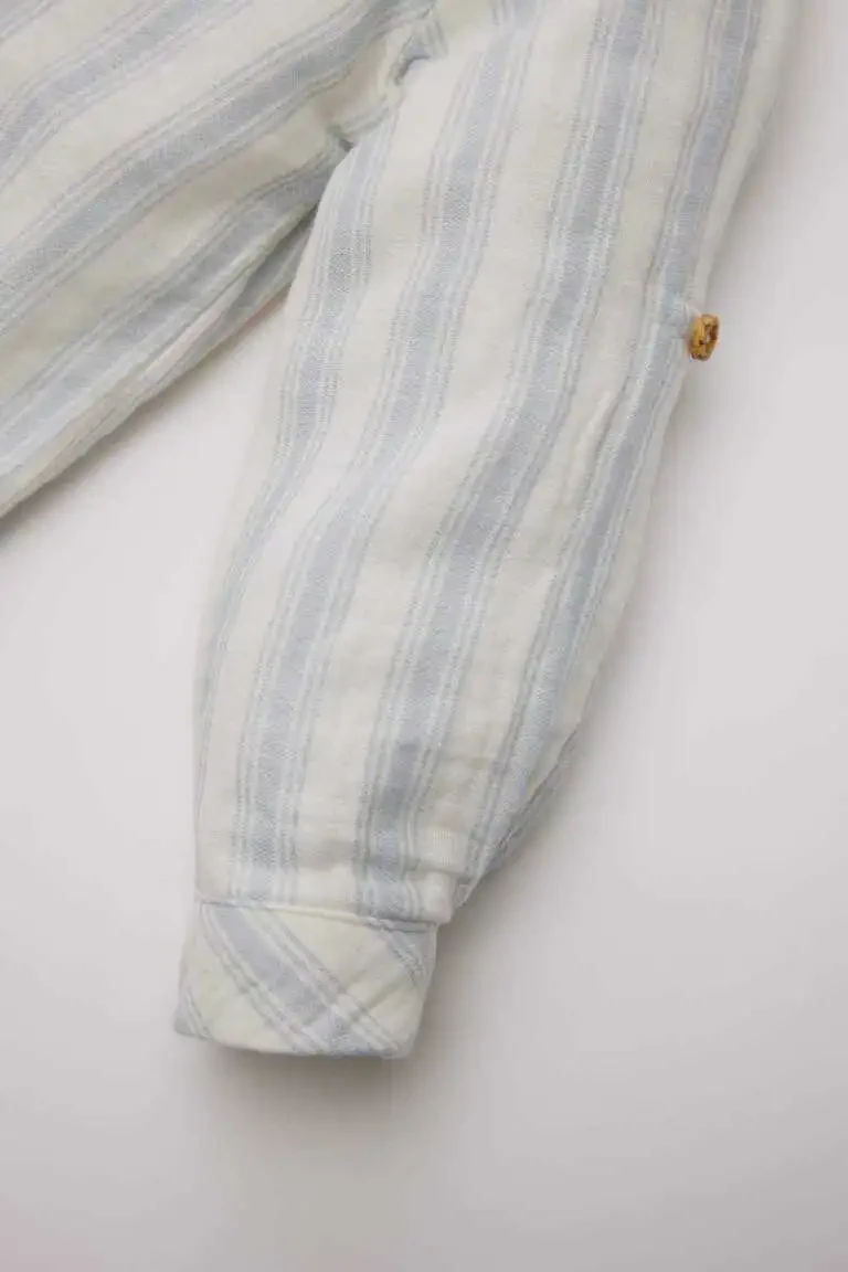 Minik beylerin gardıroplarının vazgeçilmezi olacak Erkek Bebek Çizgili Uzun Kollu Gömlek Açık Mavi, şıklığı ve rahatlığı bir araya getiriyor. Bebeğinizin hassas cildine özen gösterilerek tasarlanan bu gömlek, %100 pamuk içeriği sayesinde gün boyu konforlu bir kullanım sunar. Açık mavi rengi ve zarif çizgili deseni ile bebeğinizin her kombini tamamlayacak, ona sevimli ve stil sahibi bir görünüm kazandıracaktır.Bu gömlek, bebeğinizin hareket özgürlüğünü kısıtlamayan rahat kesimi ile oyun oynarken, gezintiye çıkarken veya özel günlerde rahatlıkla tercih edilebilir. Uzun kollu tasarımı, serin havalarda bebeğinizin sıcak kalmasına yardımcı olurken, şık görünümünden de ödün vermez. Gömleğin düğmeli ön kısmı, giydirme ve çıkarma işlemlerini kolaylaştırırken, bebeğinizin konforunu ön planda tutar.Erkek Bebek Çizgili Uzun Kollu Gömlek Açık Mavi, sadece şık bir görünüm sunmakla kalmaz, aynı zamanda bebeğinizin sağlığını da korur. %100 pamuk kumaş, bebeğinizin cildinin nefes almasını sağlayarak terlemeyi önler ve tahriş riskini en aza indirir. Ayrıca, kullanılan boyalar ve diğer malzemeler bebek sağlığına zararlı maddeler içermez, böylece bebeğinizin güvende olduğundan emin olabilirsiniz.Bu gömlek, günlük kullanımın yanı sıra özel günlerde de bebeğinizin şıklığını tamamlayacak ideal bir seçimdir. Farklı pantolonlar, şortlar veya salopetlerle kolayca kombinlenebilir ve bebeğinizin tarzını yansıtmanıza olanak tanır. Özellikle doğum günü partileri, aile ziyaretleri veya fotoğraf çekimleri için mükemmel bir seçenektir.Erkek Bebek Çizgili Uzun Kollu Gömlek Açık Mavi, kolay bakımı sayesinde de ebeveynlerin hayatını kolaylaştırır. Makinede yıkanabilir özelliği sayesinde, temizliği pratik ve hızlı bir şekilde gerçekleştirilebilir. Ütüleme gerektirmeyen kumaşı sayesinde zamandan tasarruf edebilir, bebeğinizin her zaman bakımlı ve şık görünmesini sağlayabilirsiniz.Bebeğinizin gardırobunda mutlaka bulunması gereken bu şık ve rahat gömlek, hem günlük kullanım hem de özel günler için ideal bir seçenektir. Kaliteli malzemesi, özenli işçiliği ve şık tasarımı ile Erkek Bebek Çizgili Uzun Kollu Gömlek Açık Mavi, bebeğinizin tarzını yansıtacak ve ona her zaman sevimli bir görünüm kazandıracaktır. Bebeğinizin konforunu ve şıklığını ön planda tutan bu gömlek, ebeveynlerin de beğenisini kazanacak bir üründür.