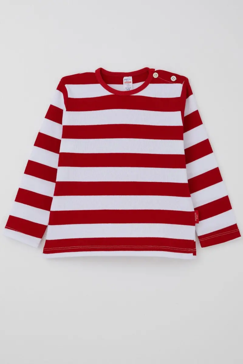 Erkek Bebek Uzun Kollu Tişört Patlı 9 Ay-3 Yaş, Kırmızı-Kırmızı