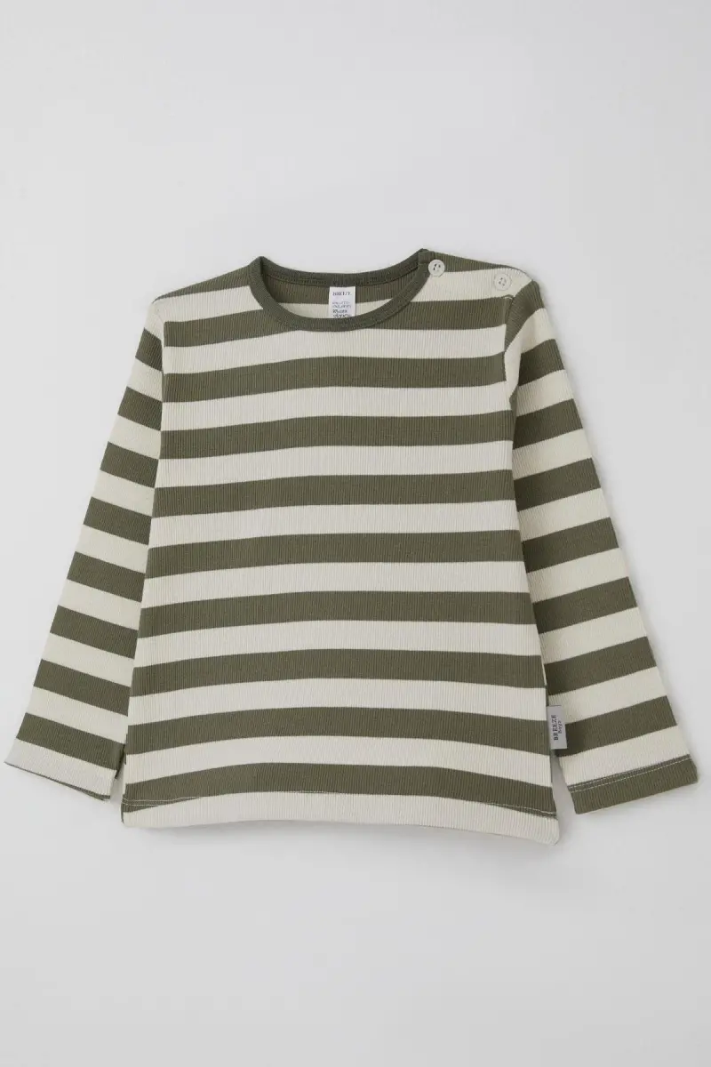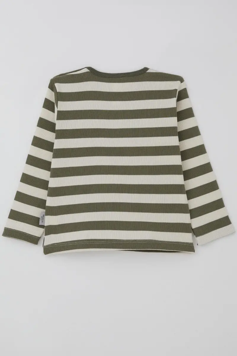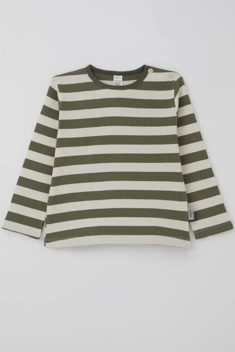 Erkek Bebek Uzun Kollu Tişört Patlı Çizgili 9 Ay-3 Yaş, Haki Yeşil-Haki Yeşil
