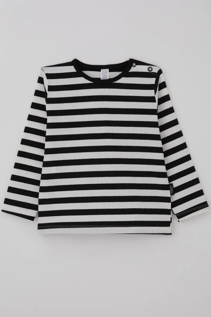 Erkek Bebek Uzun Kollu Tişört Patlı Çizgili 9 Ay-3 Yaş, Siyah-Siyah