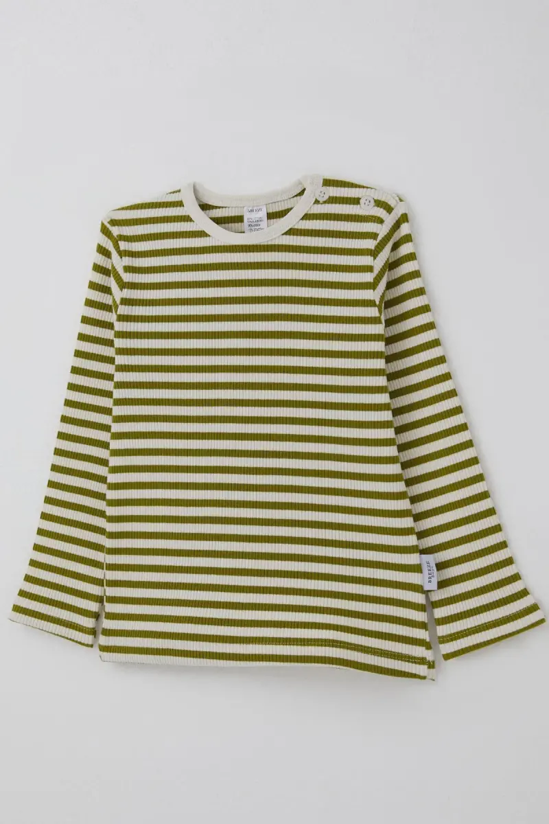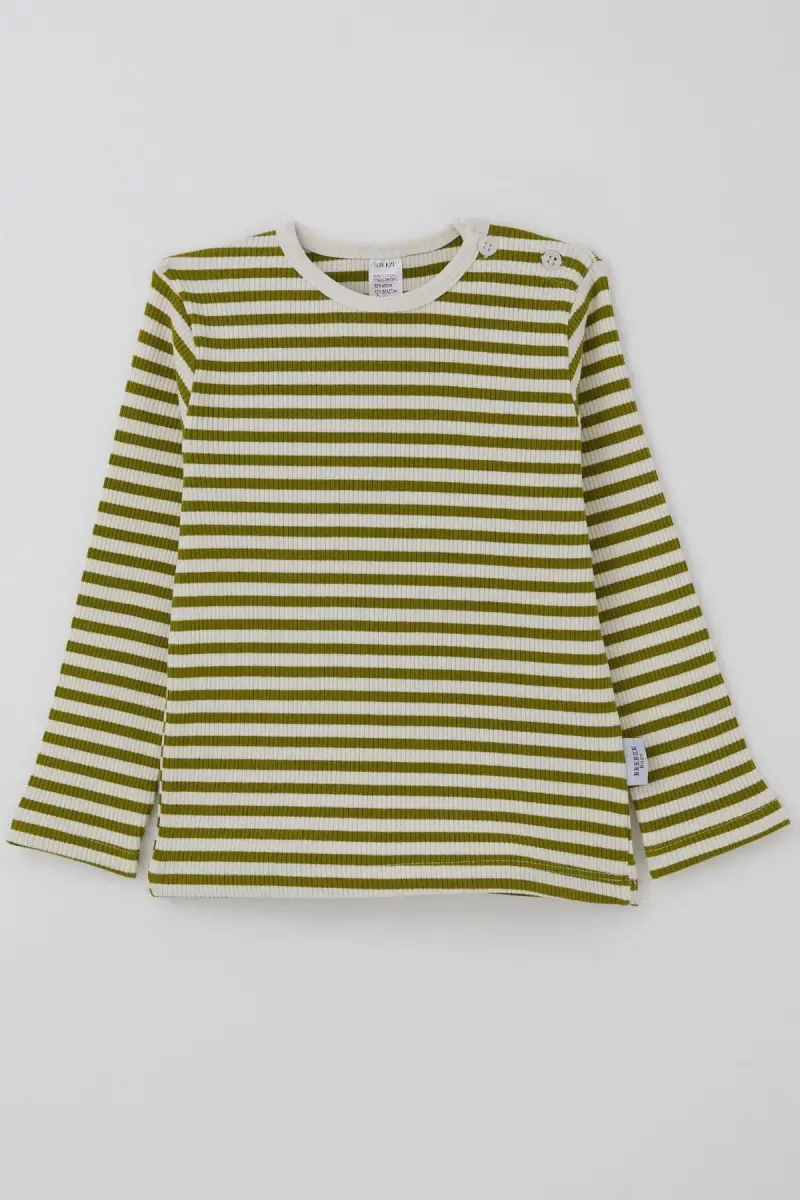 Erkek Bebek Uzun Kollu Tişört Patlı Çizgili 9 Ay-3 Yaş, Yeşil-Yeşil