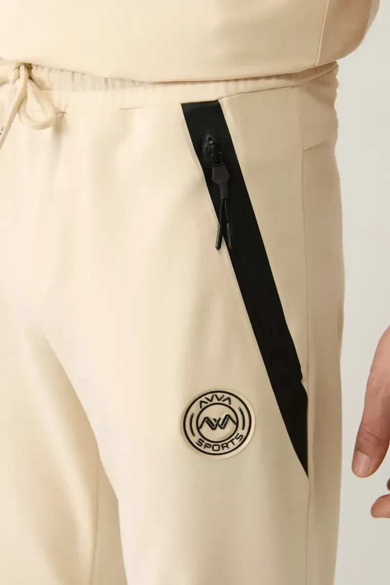 Добавьте комфорта и стиля в свой повседневный образ! Мужские спортивные штаны из джерси бежевого цвета с молниями 2-х ниточной флекси с обычной посадкой A41y3416, с их мягкой текстурой и удобной посадкой, сделают каждый момент приятным.