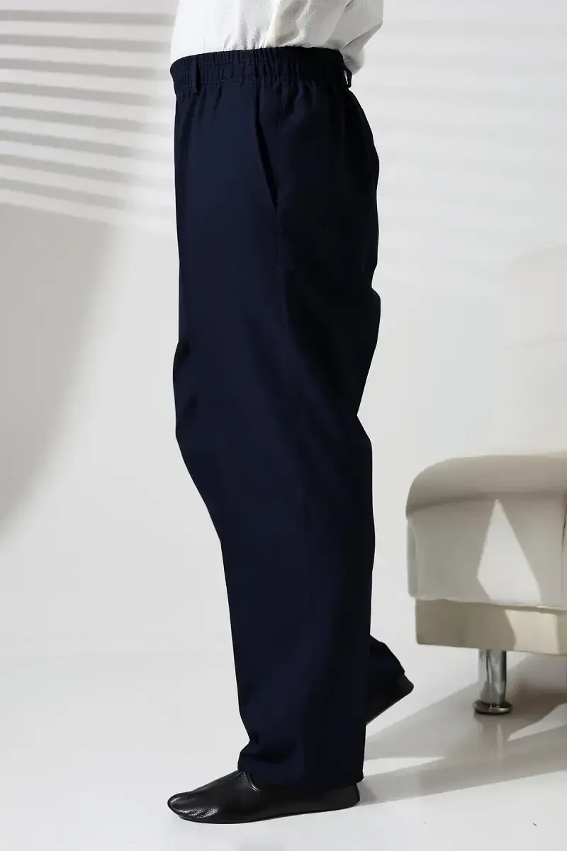 Erkek Beli Lastikli Cepli Kışlık Yün Efektli Kumaş Şalvar Pantolon, soğuk kış günlerinde hem şıklığından ödün vermek istemeyen hem de rahatlığına düşkün erkekler için ideal bir seçenektir. Yüksek kaliteli yün efektli kumaşı, vücut ısısını koruyarak üşümeyi engellerken, aynı zamanda modern ve sofistike bir görünüm sunar. Pantolonun beli lastikli tasarımı, gün boyu hareket özgürlüğü sağlarken, her bedene kolayca uyum sağlar. İster evde dinlenirken, ister dışarıda arkadaşlarınızla buluşurken, isterse de günlük işlerinizi hallederken rahatlıkla tercih edebileceğiniz bu şalvar pantolon, konforu ve stili bir araya getirir. Cepli tasarımı, anahtar, telefon veya cüzdan gibi kişisel eşyalarınızı güvenle taşımanızı sağlar. Lacivert rengi, klasik ve şık bir görünüm sunarken, farklı renk ve stillerdeki üst giyim parçalarıyla kolayca kombinlenebilir. Gömlek, tişört veya kazaklarla tamamlayarak farklı tarzlar yaratabilirsiniz. Yüksek kaliteli malzemesi ve özenli işçiliği sayesinde uzun ömürlü bir kullanım sunar. Kış gardırobunuzun vazgeçilmez bir parçası olacak bu şalvar pantolon, hem sıcak tutar hem de şık görünmenizi sağlar. Hem günlük kullanıma hem de özel günlerde rahatlığınızdan ödün vermeden şık olmak istediğinizde tercih edebileceğiniz bu pantolon, tarzınızı yansıtmanıza yardımcı olur. Düşük sıcaklıklarda bile konforlu bir deneyim sunan bu pantolon, aynı zamanda kolayca temizlenebilir ve ütülenebilir özelliğiyle de pratik bir kullanım imkanı sunar. Bu şalvar pantolon ile kış aylarında hem rahat hem de şık olmanın keyfini çıkarın.