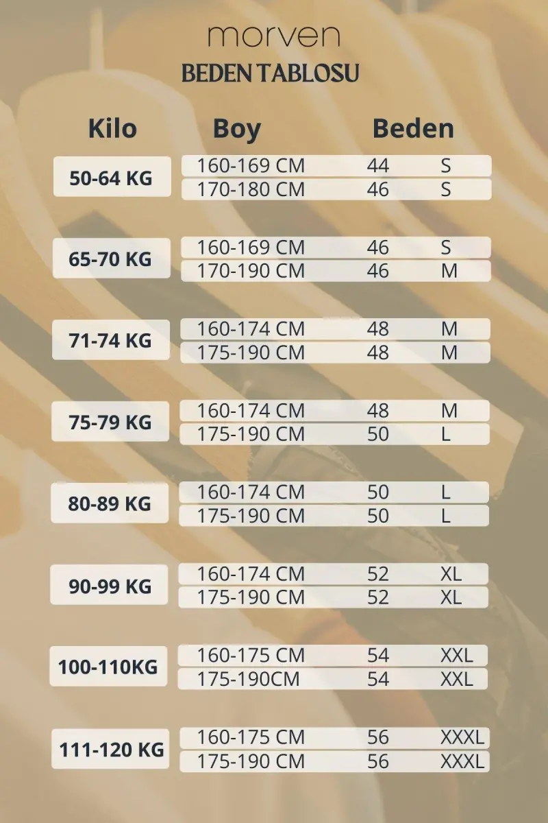 Modelin üzerindeki beden M'dir. Ürününüzü uzun ömürlü kullanmak için etiket üzerindeki yıkama talimatlarına uyunuz. Ütüleme esnasında düşük ısı kullanılması tavsiye edilir. Lütfen beden tablosunu inceleyerek size en uygun bedeni seçiniz.