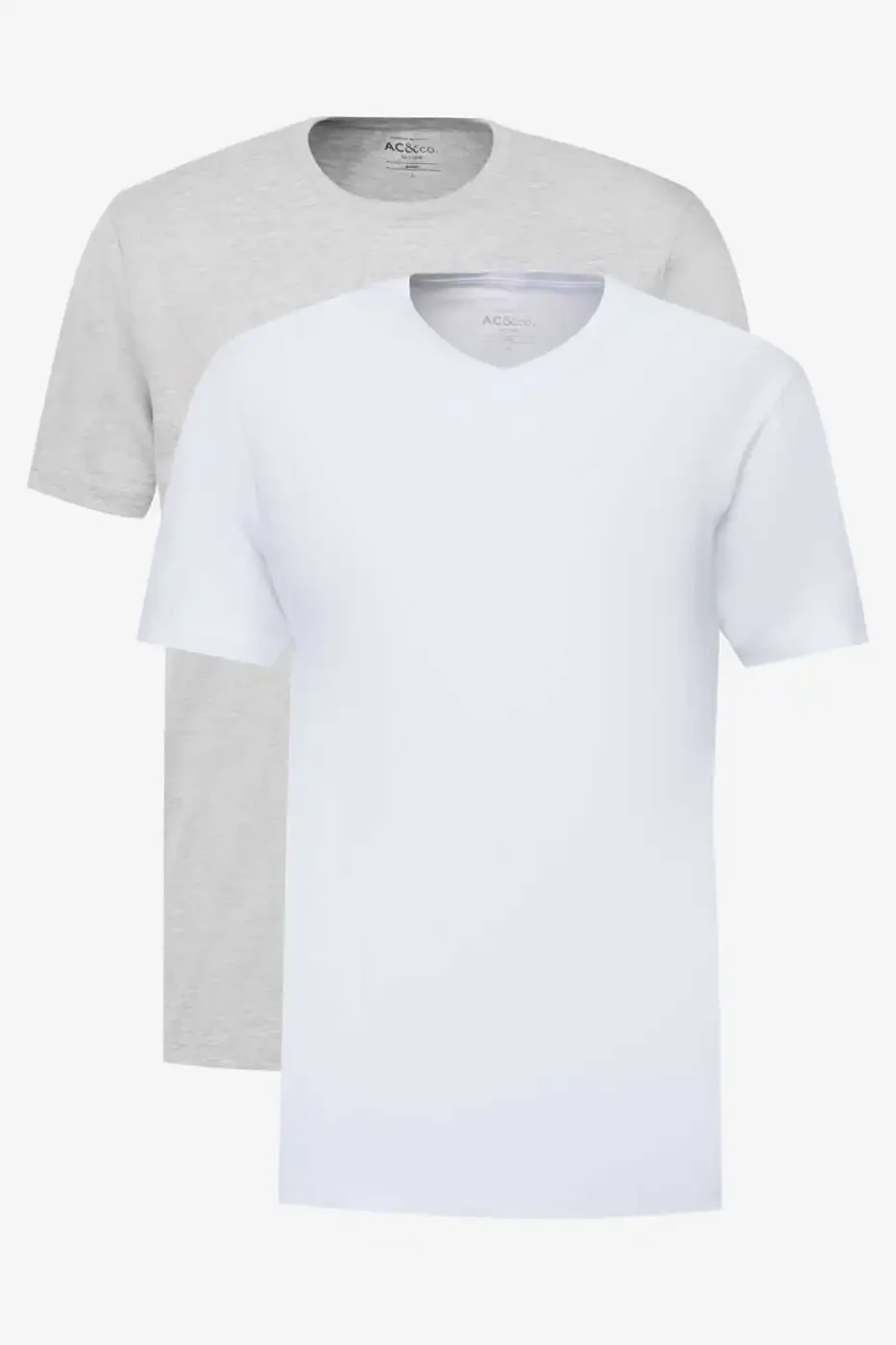 Altınyıldız Classics, men's t-shirt, slim fit, cotton, basic t-shirt, 2-pack, white t-shirt, grey melange, short sleeve, crew neck, V-neck.