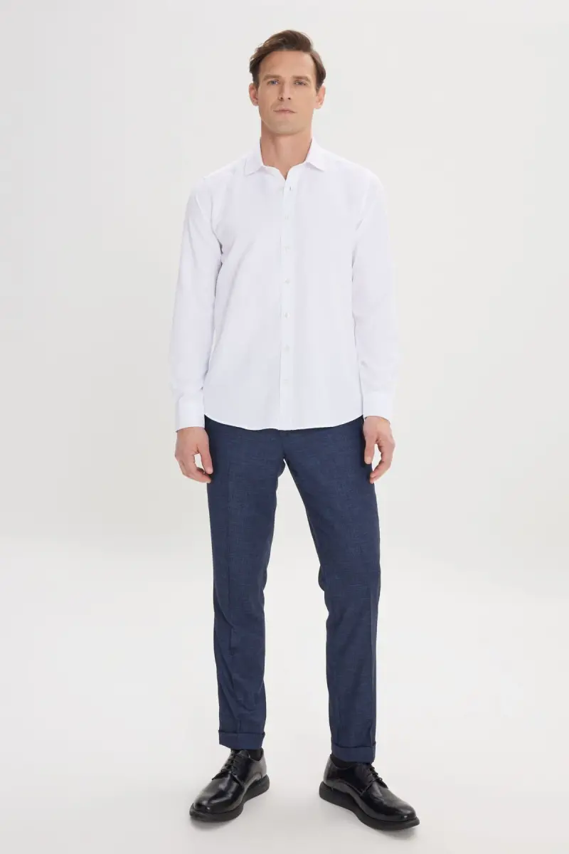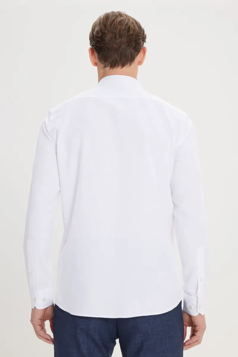 Erkek Beyaz Kolay Ütülenebilir Slim Fit Dar Kesim Pamuklu Klasik Yaka Armürlü Gömlek-KLASİK YAKA