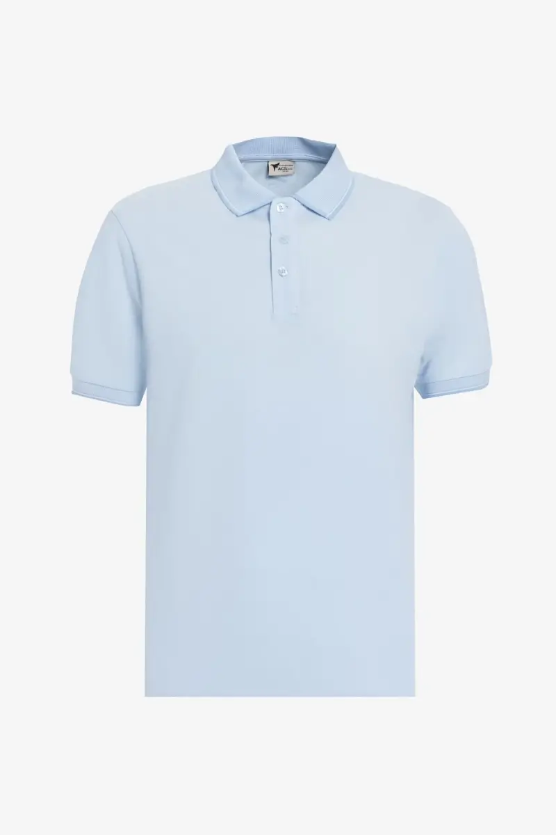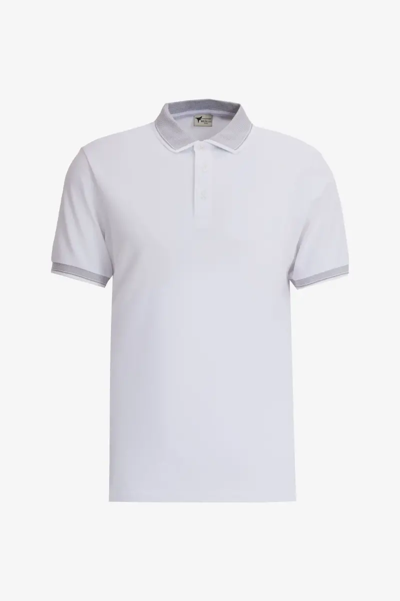 Erkek Beyaz-lacivert-açık Mavi 3'lü Çekmeyen Pamuklu Slim Fit Kıvrılmaz Polo Yaka Tişört-BEYAZ
