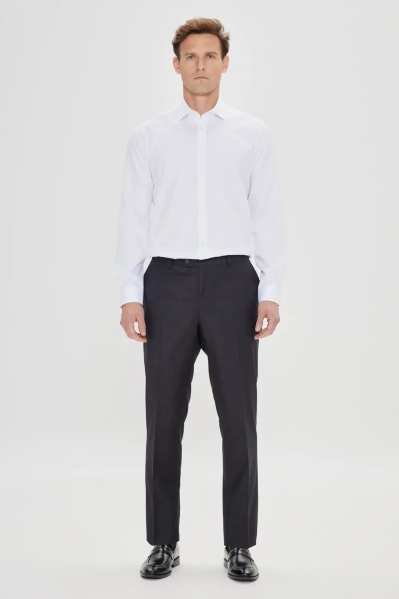 Erkek Beyaz Slim Fit Dar Kesim Klasik Yaka %100 Pamuk Ütü Gerektirmeyen Non-Iron Gömlek-Beyaz