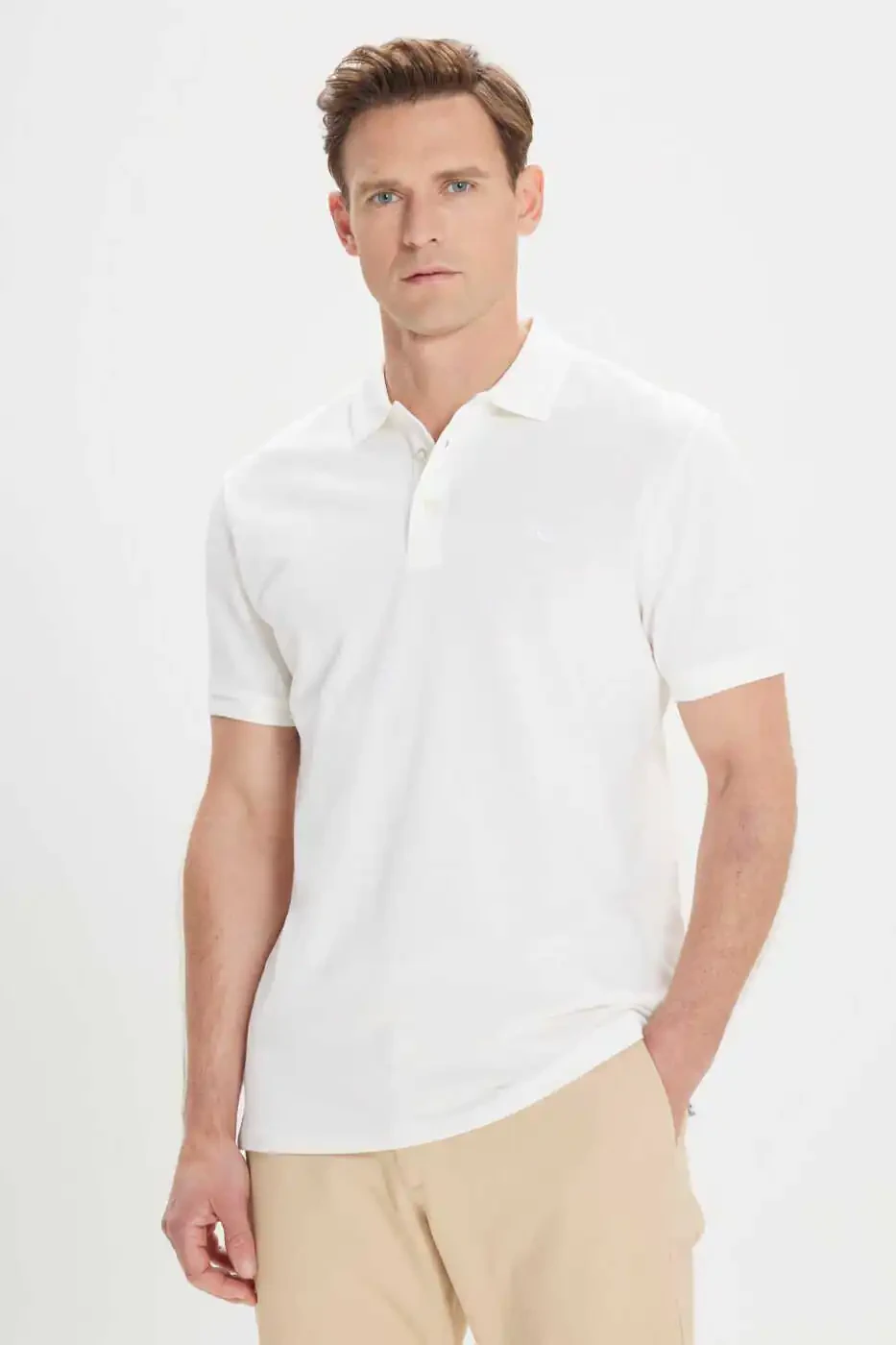 The indispensable choice of the modern man who seeks elegance and comfort together in the summer months: Altınyıldız Classics Collection Slim Fit Tight Cut 100% Cotton Polo Collar T-shirt! This t-shirt offers all-day comfort with its 100% cotton structure, while its slim fit tight cut perfectly embraces your body. The classic and timeless polo collar design adds elegance to all your combinations. Its white color perfectly matches any color pants and shoes. Whether you dress for daily life or special occasions, this t-shirt always makes you look stylish and well-groomed. Its breathable fabric guarantees you stay cool and refreshed in hot weather. With its durable structure, this t-shirt, which will take its place at the forefront of your wardrobe for many years, is offered to you with Altınyıldız Classics quality. The product is made of 100% carefully selected cotton. In this way, it leaves a soft feeling on your skin and does not cause irritation. Designed for modern and dynamic men, this t-shirt helps you reflect your confidence and style. Its pocketless design offers a clean and minimalist look. Its short sleeves keep you cool in the summer months. This t-shirt, from Altınyıldız Classics' special collection, is a perfect choice for those who seek elegance and comfort together. The product on the model is size L and the model's height is 1.89 cm and weight is 80 kg. This information will help you when choosing your size. You can machine wash the product at 30 degrees and use dry cleaning chemicals except trichlorethylene. It is recommended not to use bleach and not to tumble dry. You can iron at low temperature. By following these instructions, you can ensure that your t-shirt lasts a long time. You can add a stylish and comfortable piece to your summer wardrobe by ordering this product, which is available in abundance in our stocks.