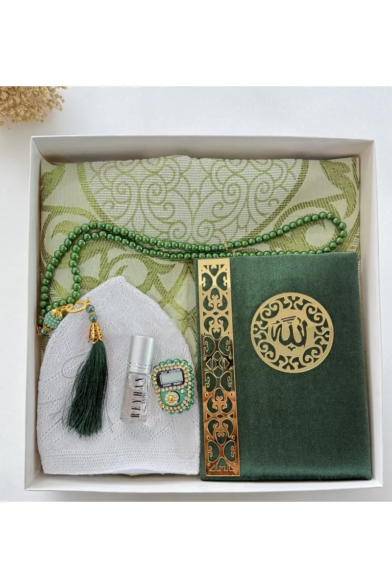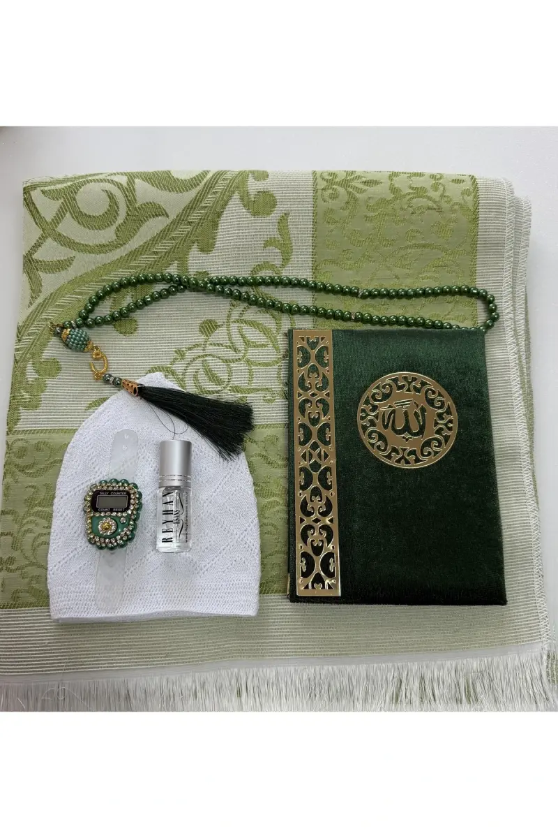 Erkek Bohça Seti , Damat Bohçası Seti , Damat Seti , Seccade , Çeyizlik Seccade Seti-Yeşil