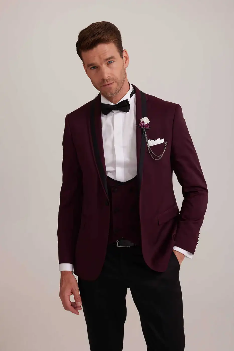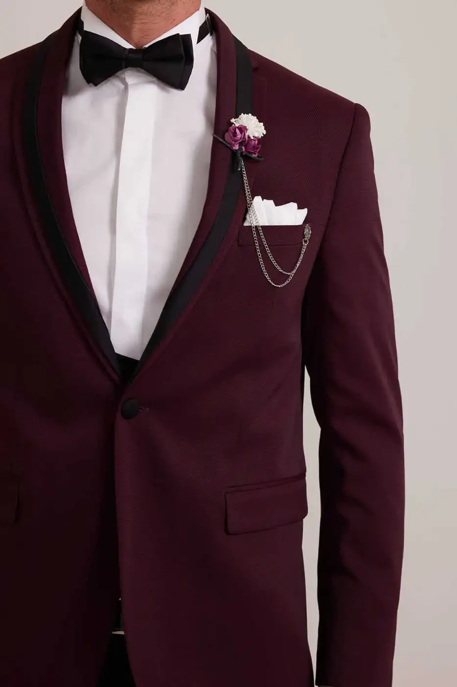 Уход за мужским бордовым смокингом с отложным воротником Slim Fit для выпускного вечера