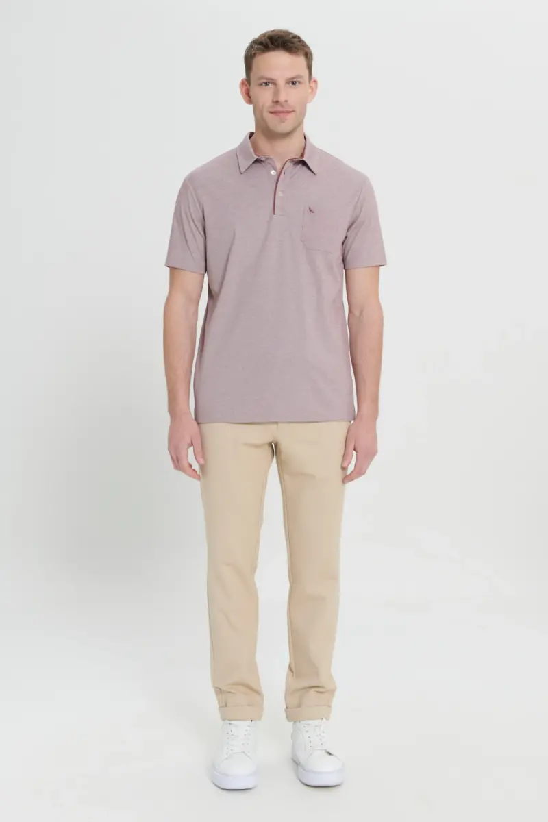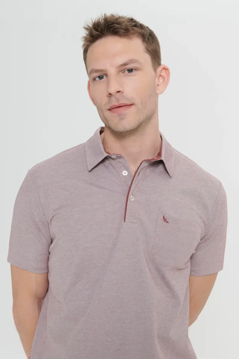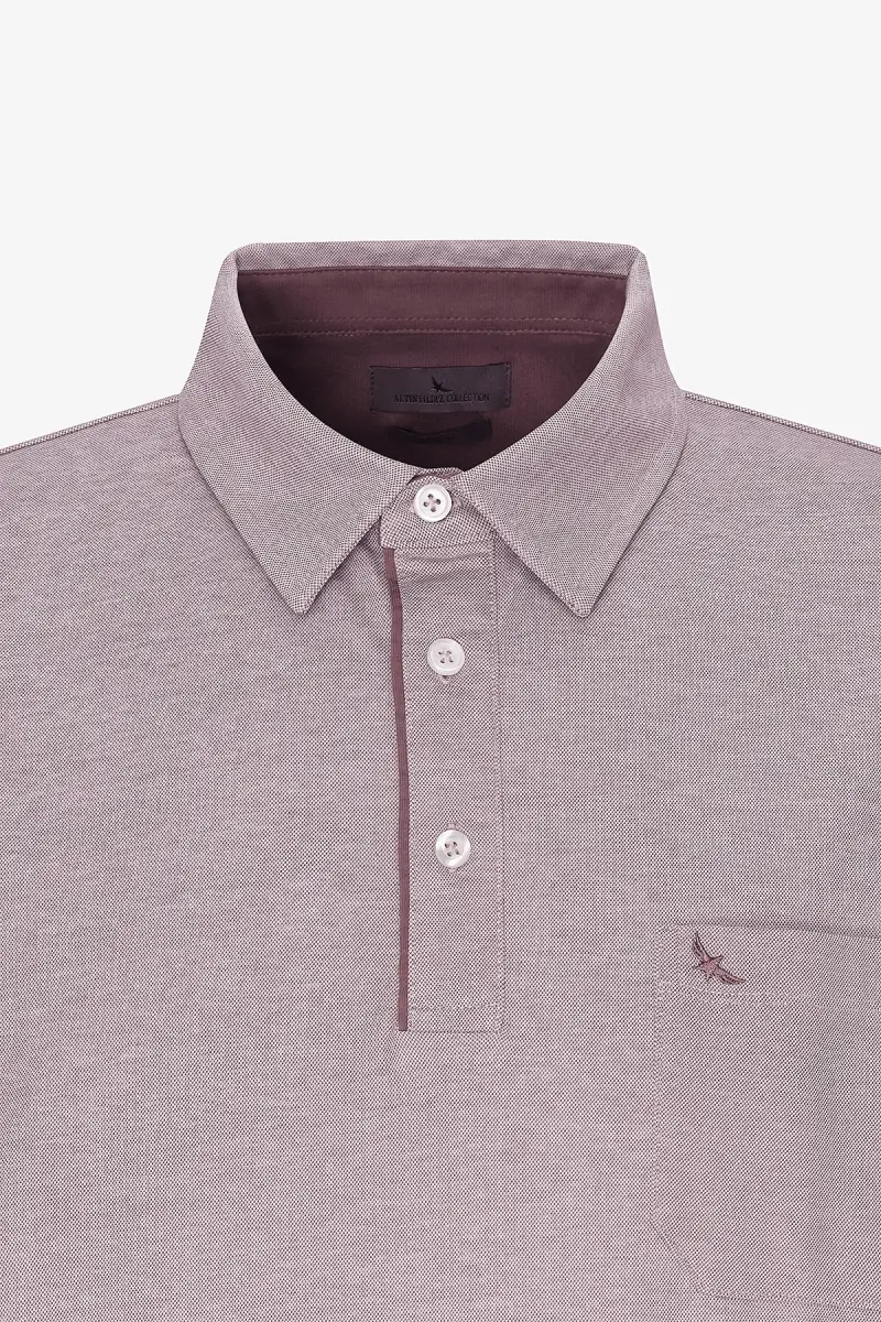 Erkek Bordo Comfort Fit Rahat Kesim Polo Yaka Pamuklu Kısa Kollu Tişört-Bordo