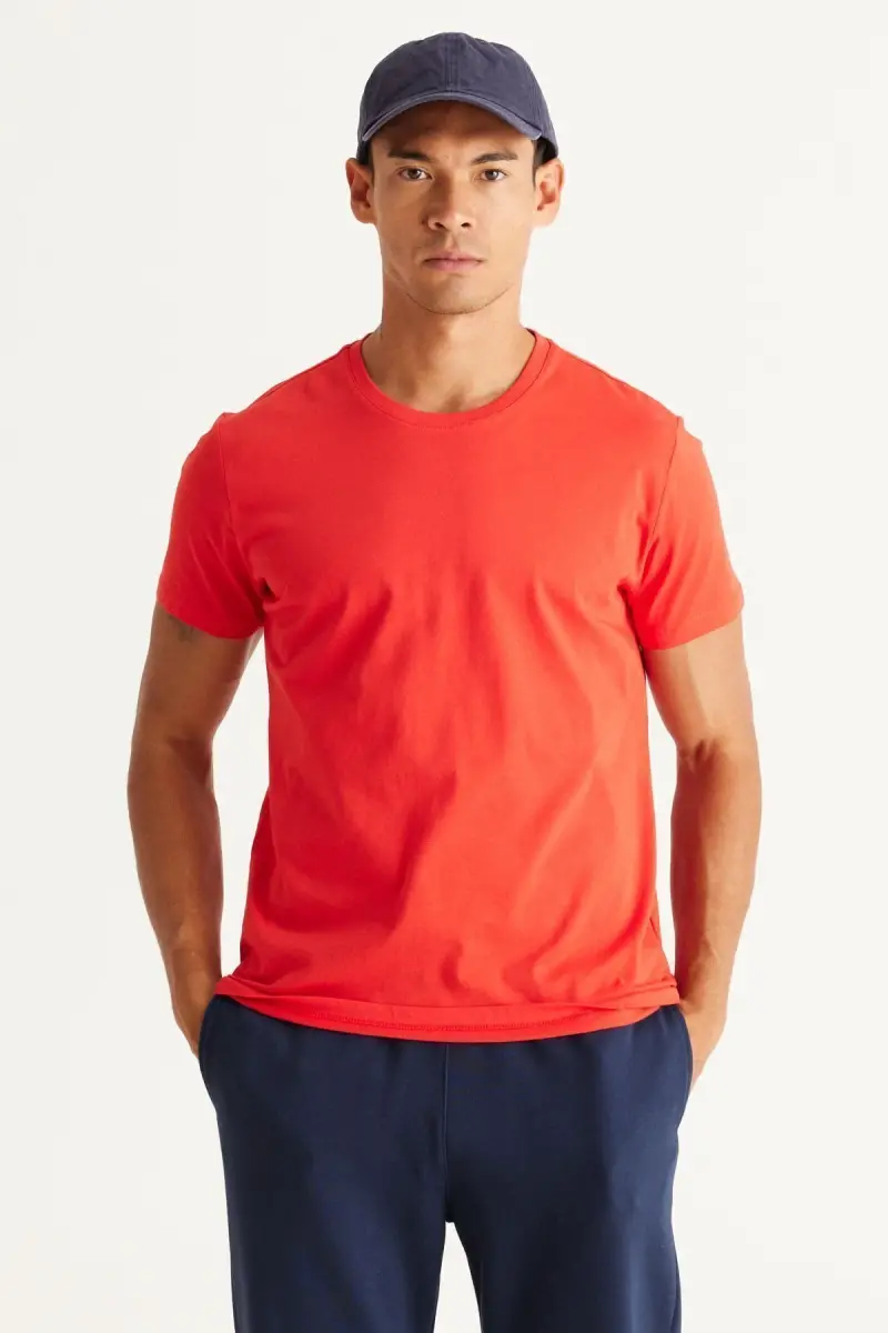 Erkek BORDO-KIRMIZI 2'li Paket Slim Fit Dar Kesim Pamuklu Basic Tişört-Bordo